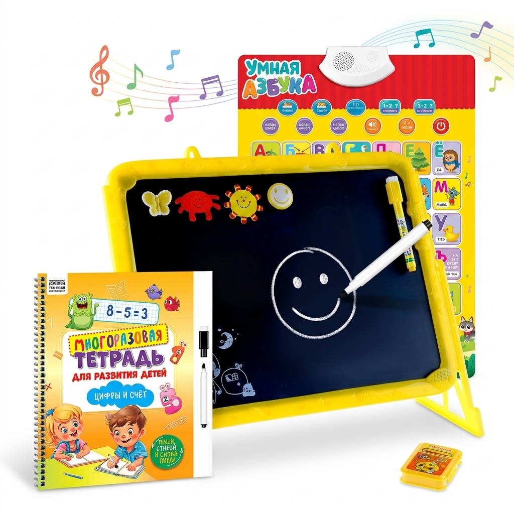 Всё уже собрано: писать, стирать, играть и учиться. Без подбора, без ошибок — просто начать.