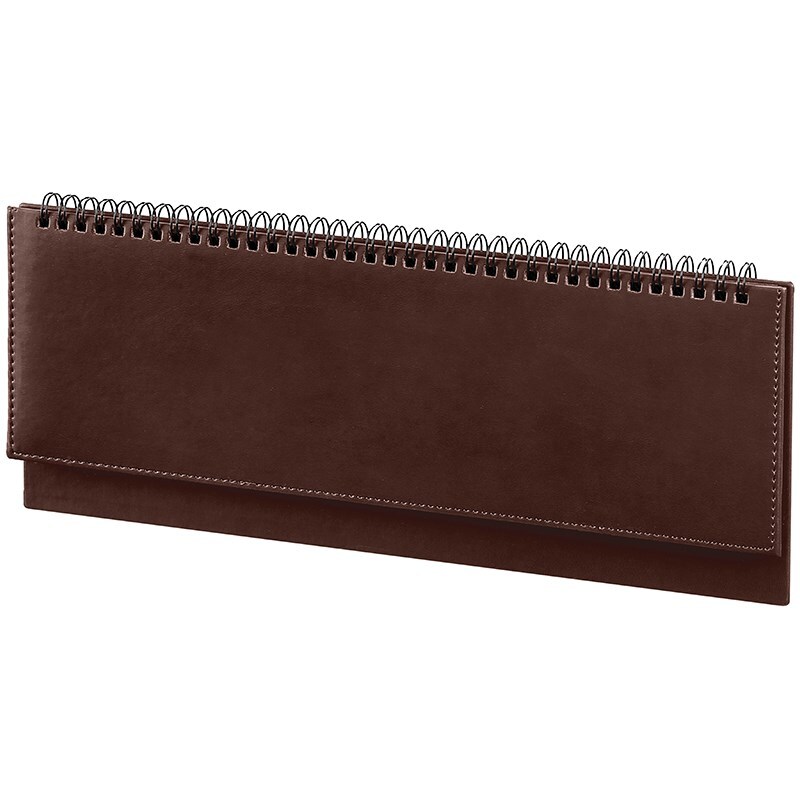 Цвет обложки коричневый, 64 листа. Обложка изготовлена из высококачественного импортного кожзаменителя с поролоновой прослойкой. Планинг на спирали. Подходит для всех видов полиграфического тиснения. Внутренний блок состоит из офсетной бумаги плотностью 70 г/м2, печать блока в 2 краски, календарь на 4 года, телефонная книжка.
