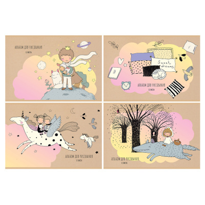 Альбом для рисования BG «Мир сказок» поставляется с ассорти дизайнов формата А4 и размера 205*295 мм. Товар с обложкой из мелованного картона из 32 листов офсетной бумаги 90% белизны. Тип скрепления изделия – скрепка. Плотность бумаги альбома составляет 100 г/кв.м, что соответствует техническому регламенту «О безопасности продукции, предназначенной для детей и подростков». В данную серию входят дизайны для девочек. Альбом отлично подходит для рисования различными типами красок, фломастерами, цветными и чернографитными карандашами, гелевыми ручками. Без возрастных ограничений.