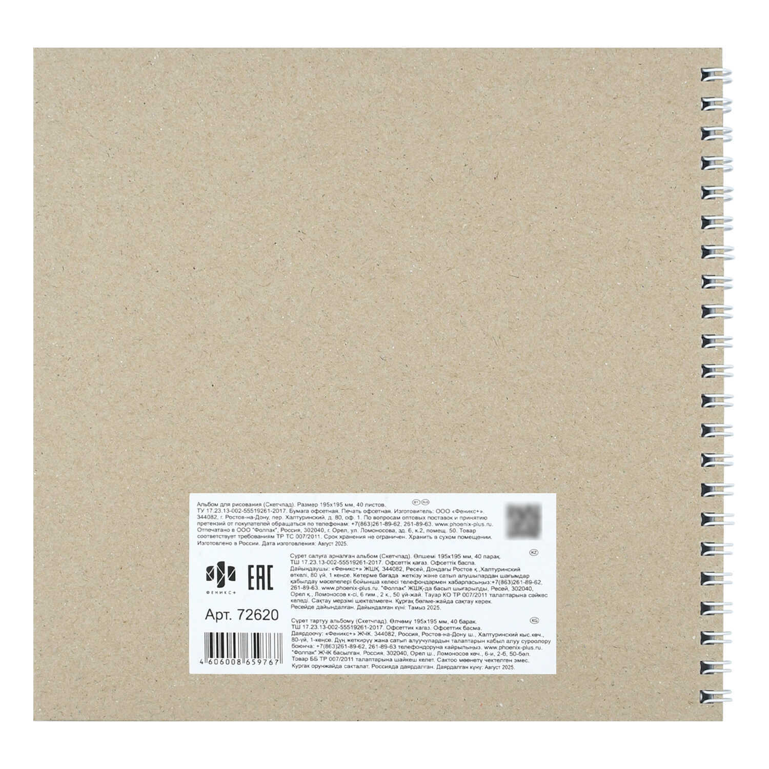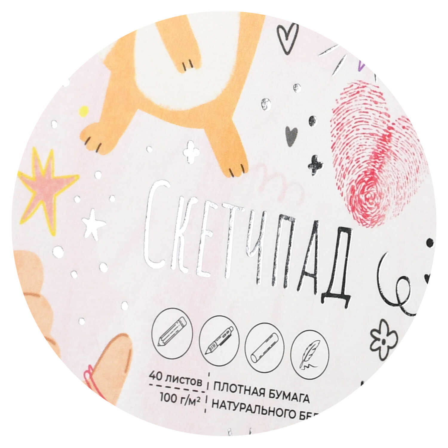Альбом для рисования (Скетчпад) 195х195 мм, 40 л, блок - белый офсет 100 г/м², арт. 72620 МИКС ДЛЯ ДРУЗЕЙ /обложка полноцветная печать, гребень по короткой стороне, тиснение фольгой