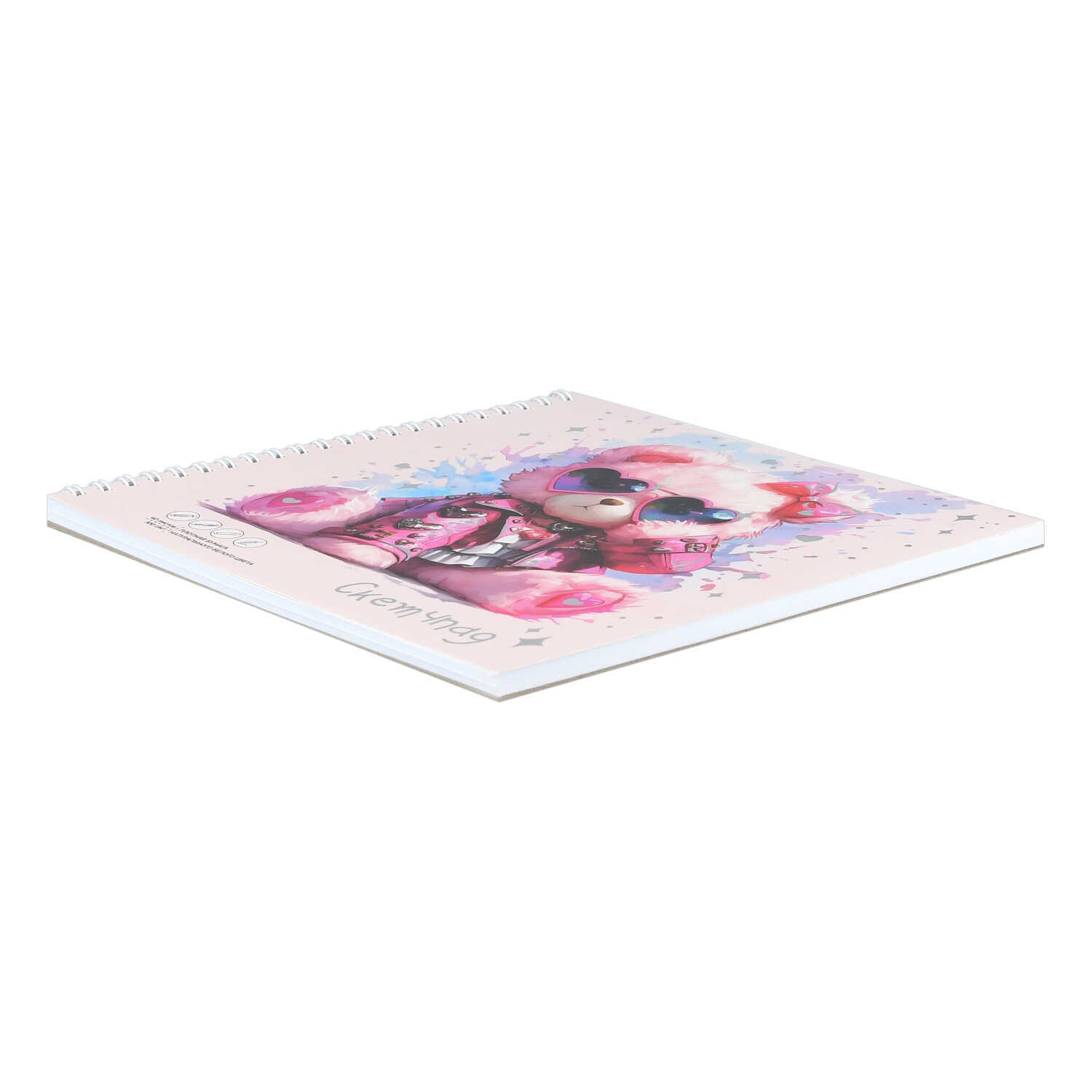 Альбом для рисования (Скетчпад) 195х195 мм, 40 л, блок - белый офсет 100 г/м², арт. 72621 РОЗОВЫЙ МИШКА /обложка полноцветная печать, гребень по короткой стороне, тиснение фольгой