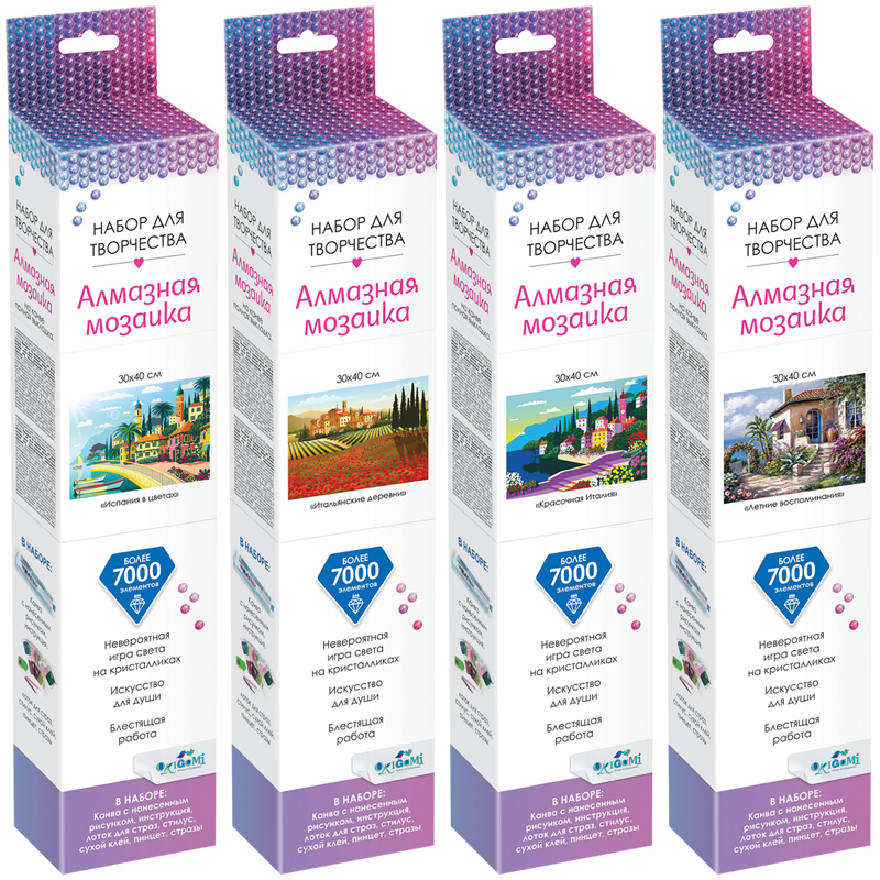Алмазная мозаика на канве – это интересный и занимательный вид творчества. С помощью страз и нанесенного на канву принта с условными обозначениями цветов вы создадите настоящее произведение искусства. Для вашей комфортной работы в наборе идут дополнительные зип пакеты.
