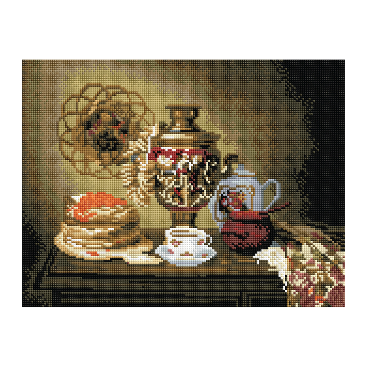 • холст 30*40 см на деревянном подрамнике с цветной схемой картины, покрытый клеевым слоем и защищенный специальной пленкой;
