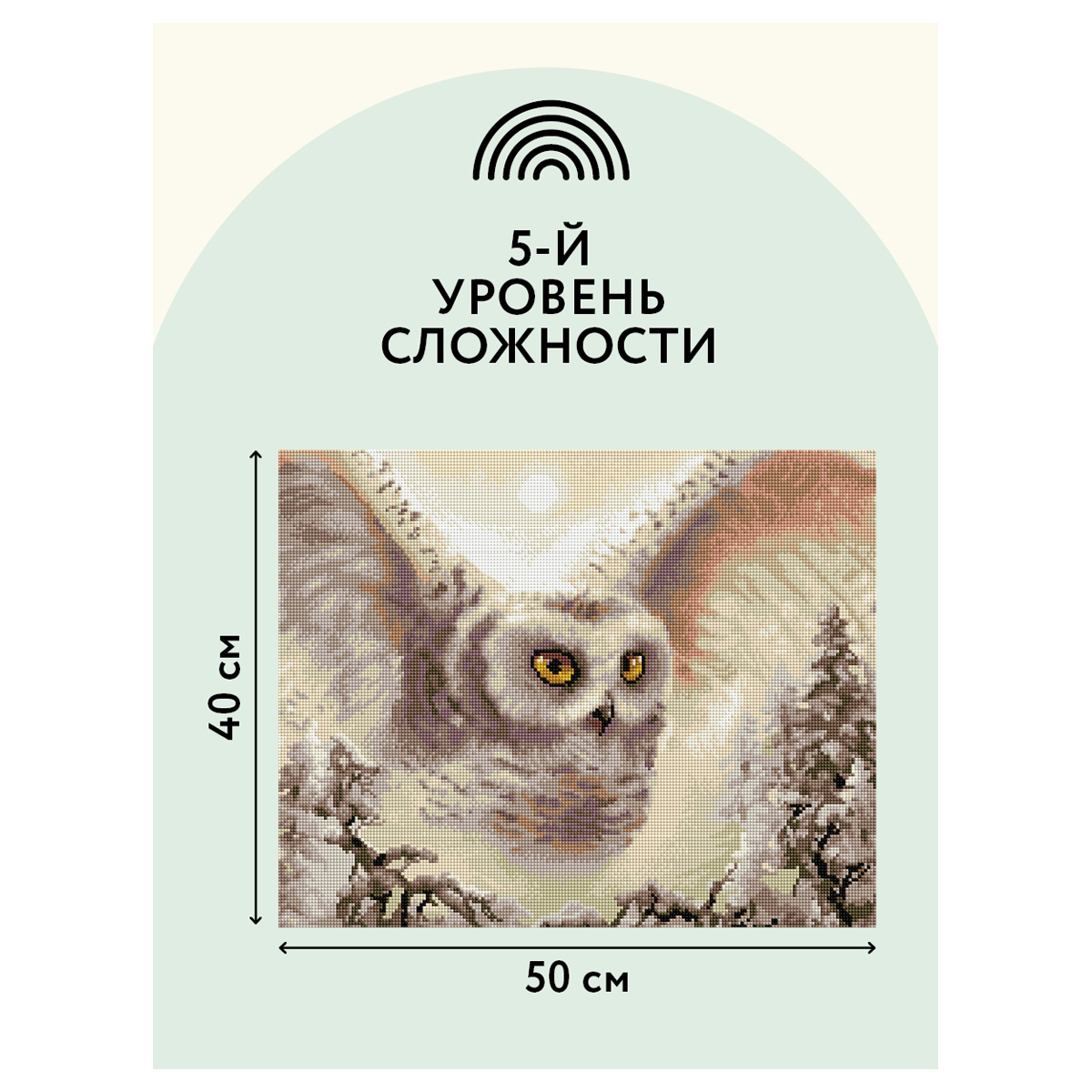 Алмазная мозаика ТРИ СОВЫ "Полярная сова", 40*50см, холст на деревянном подрамнике, картонная коробка с пластиковой ручкой