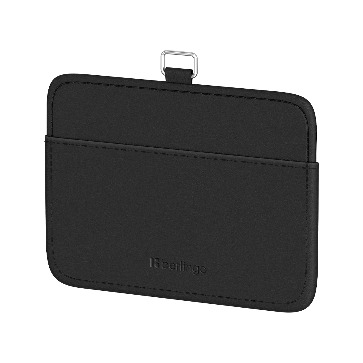 Бейдж горизонтальный Berlingo "ID 500", 85*55мм, экокожа, держатель-рулетка с лентой 45 см, черный