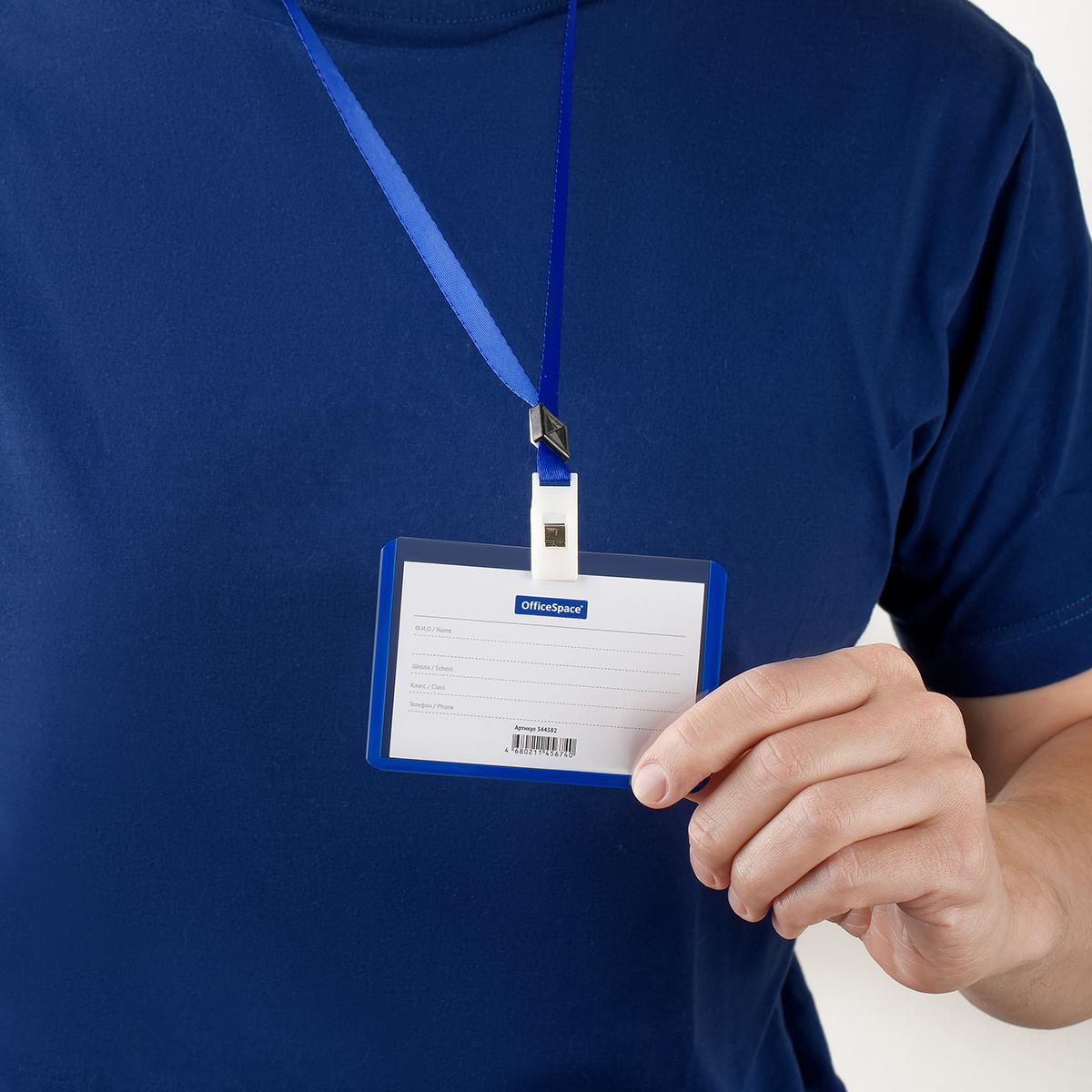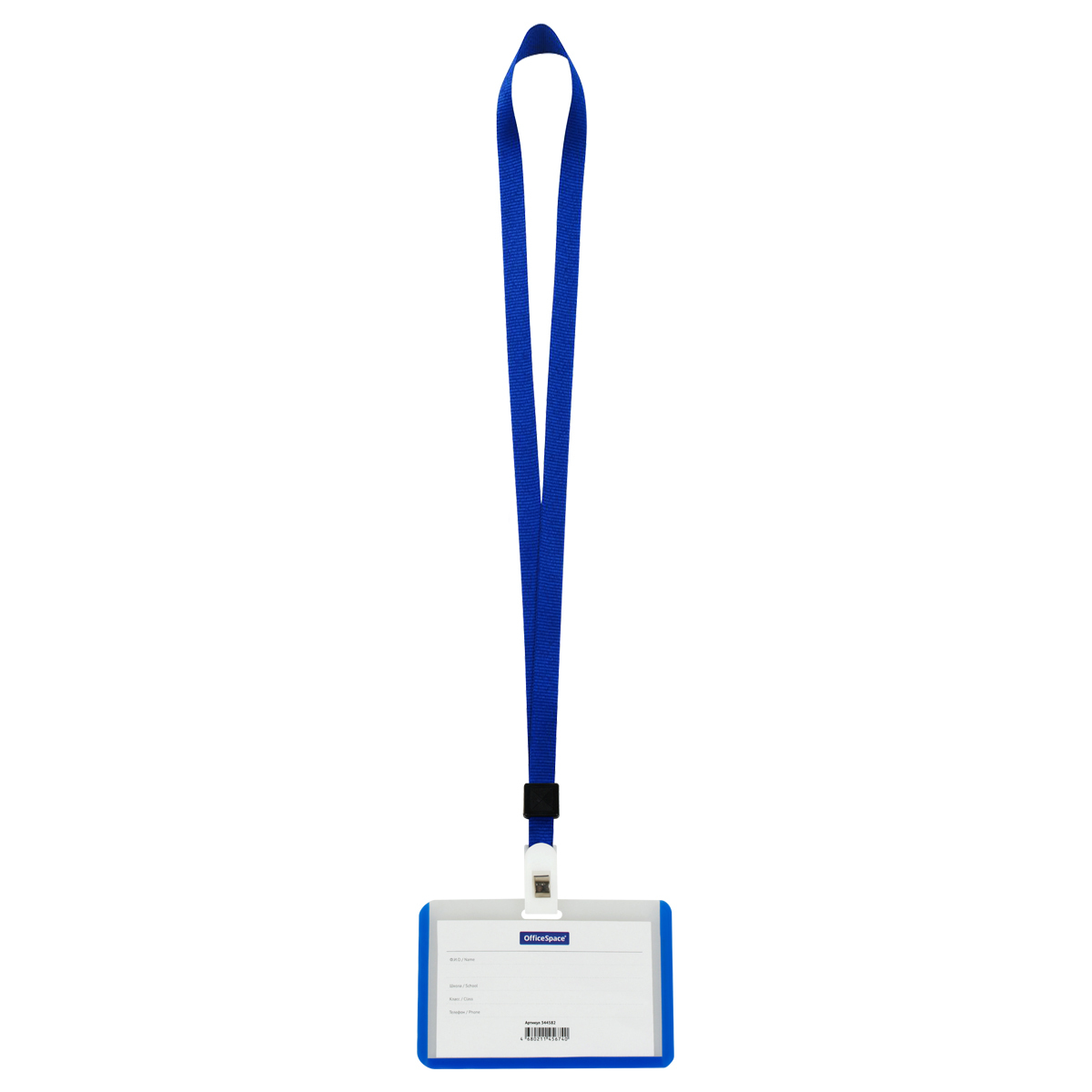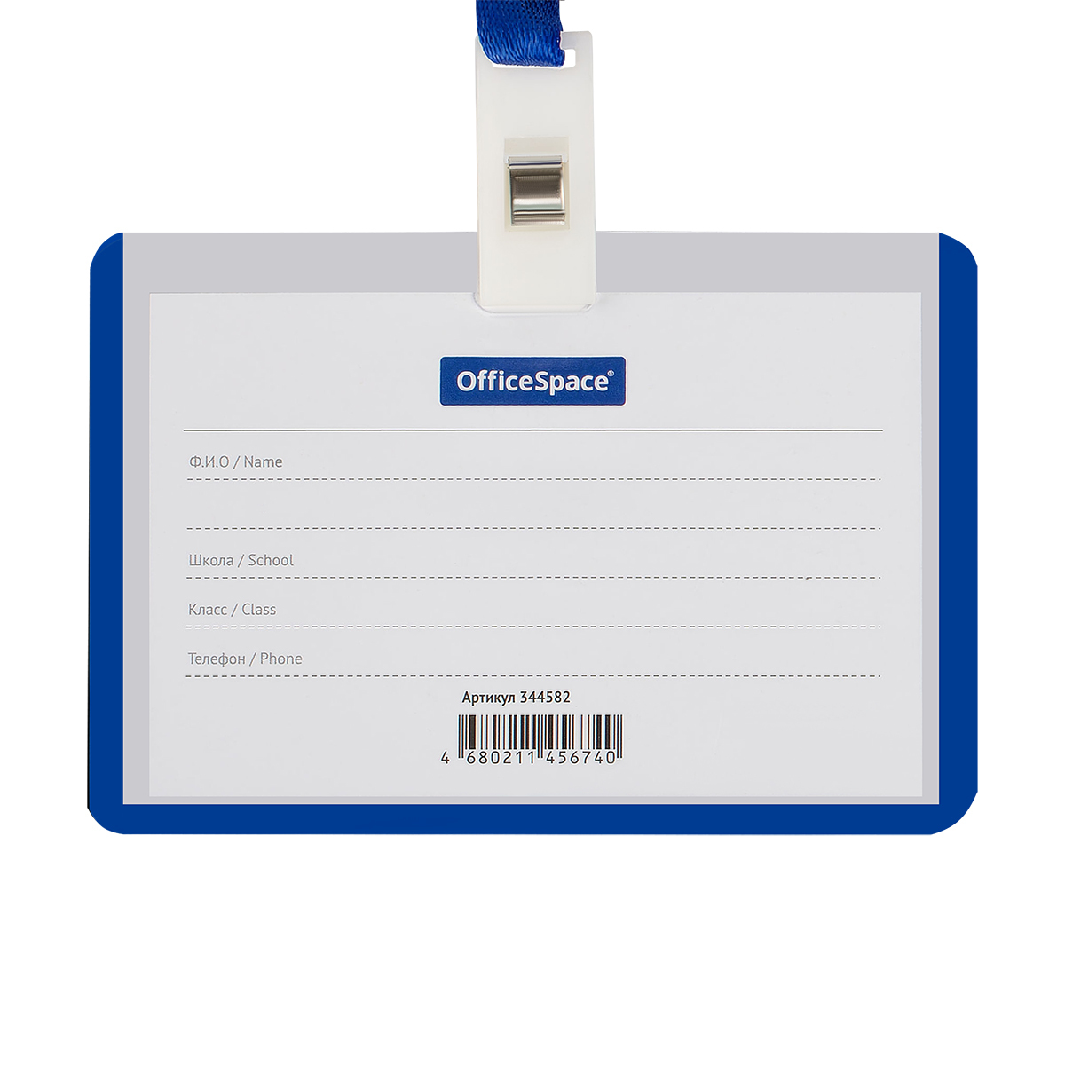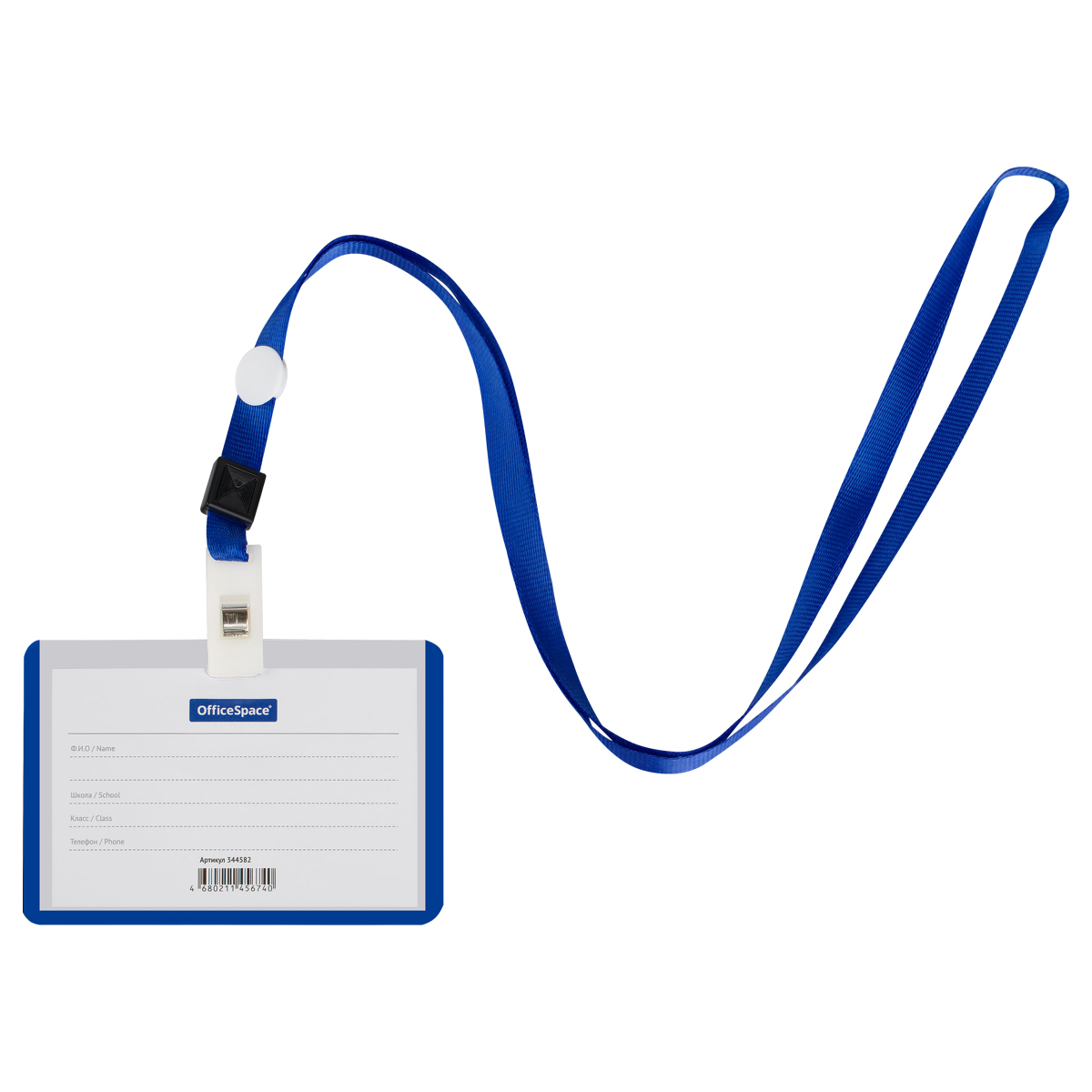 Бейдж горизонтальный из прочного пластика с синей окантовкой предназначен для идентификации учащегося в образовательных учреждениях. В комплекте держатель-лента длиной 40 см, прикрепляющаяся к бейджу клипсой. Упакован в ОПП пакет.