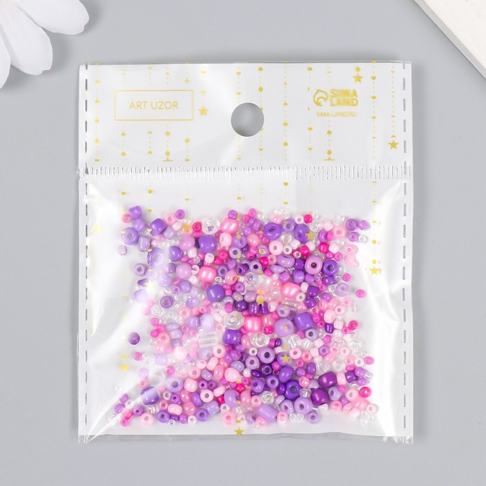 Бисер стекло 6/0 - 15/0 "Ассорти фиолетовое" d=1,5-4 мм, н-р 10гр 7463303