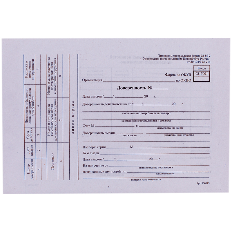 Бланк "Доверенность" OfficeSpace, А5 (форма М-2) оборотный, газетка, 100 экз. в пленке т/у