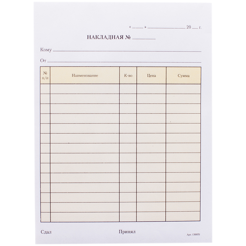 Бланк двухслойный самокопирующийся "Накладная". Бланк изготовлен из самокопирующейся бумаги. На верхний лист текст наносится обыкновенной ручкой, карандашом или матричным принтером. Оттиск черного цвета появляется одномоментно на нижележащем листе. Бланки изготовлены из офсетной бумаги. В склейке 50 экземпляров. Упаковка в термоусадочную пленку.