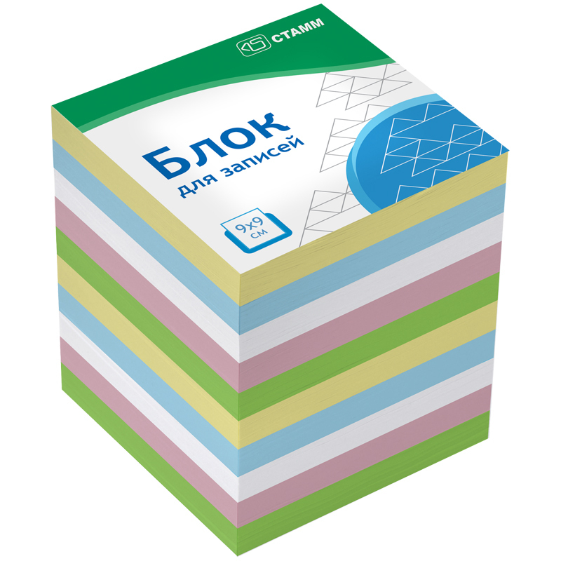 Размер листа в блоке - 90×90 мм, высота блока - 90 мм. Может использоваться в пластиковых подставках и настольных органайзерах. Блок для записей представлен в индивидуальной упаковке в термоусадочной пленке.