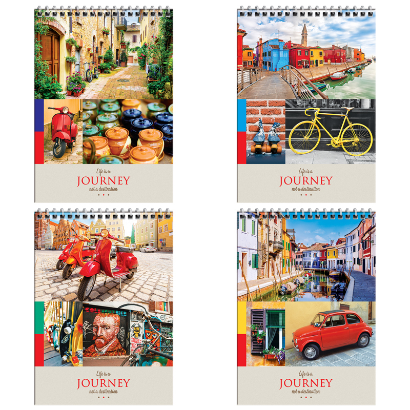 Блокнот формата А5, 80 листов, в твердой обложке с глянцевой ламинацией. Внутренний блок - белая офсетная бумага плотностью 60 г/кв.м, в клетку без полей.
