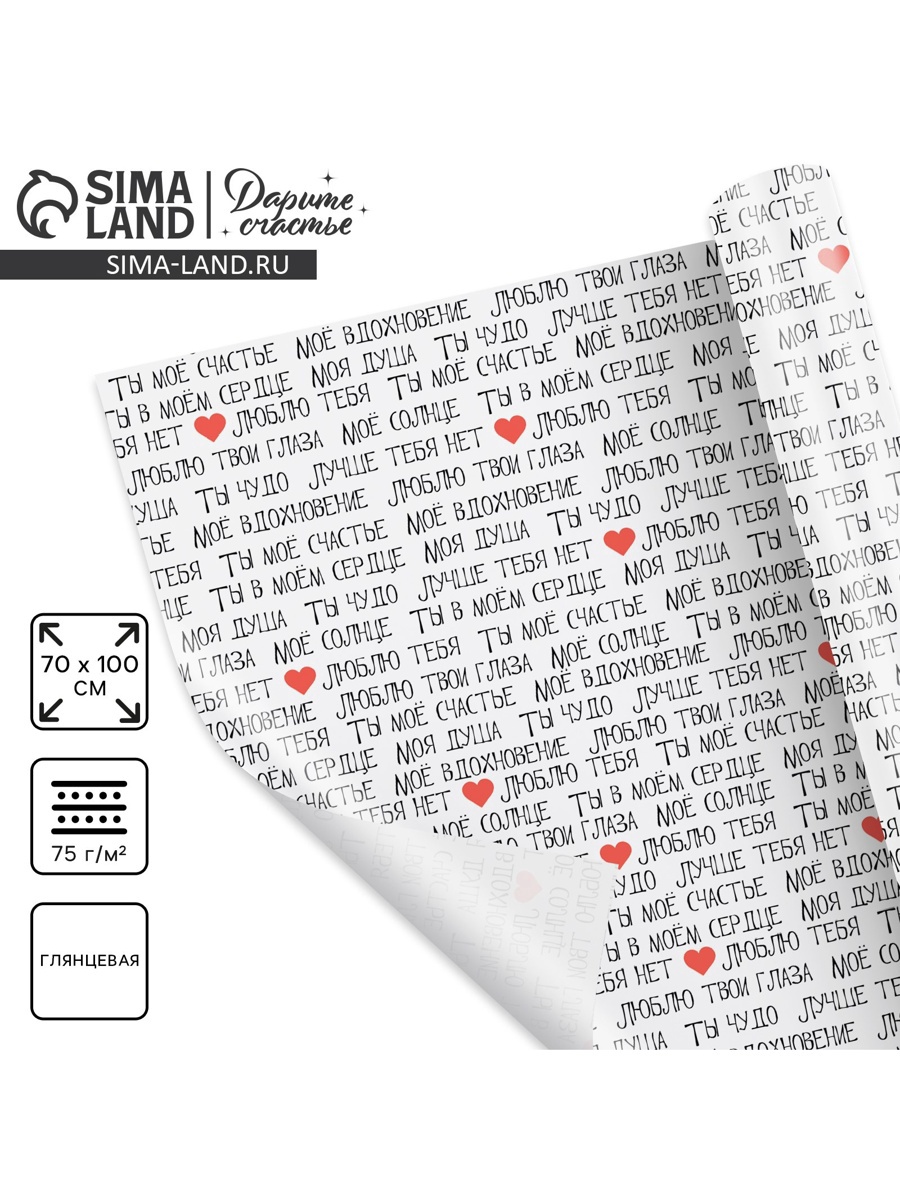 Бумага упаковочная глянцевая «Ты моё счастье», 70×100 см