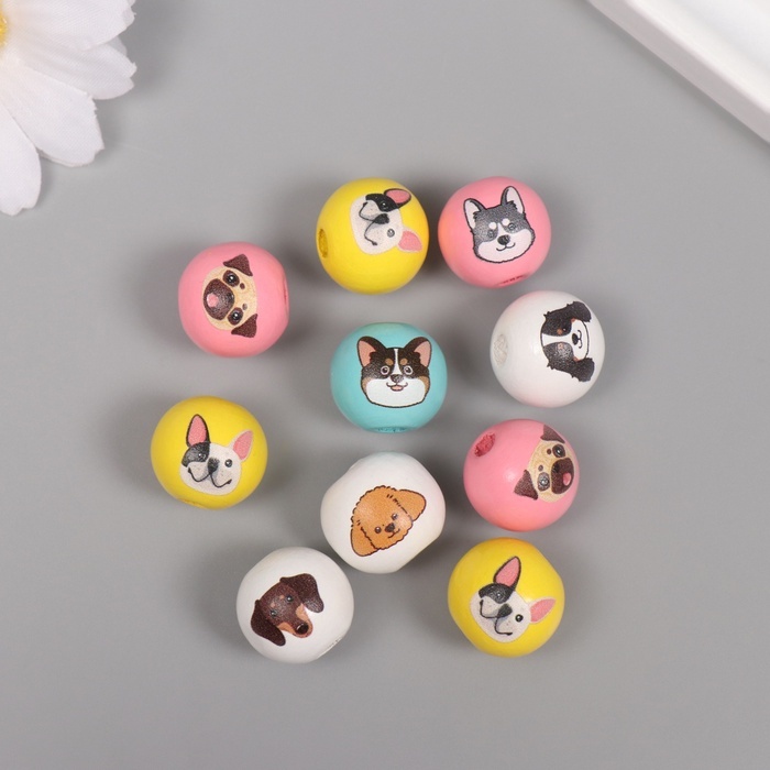 Бусины для творчества дерево «Пёсики», набор 10 шт., 1.6×1.6×1.6 см
