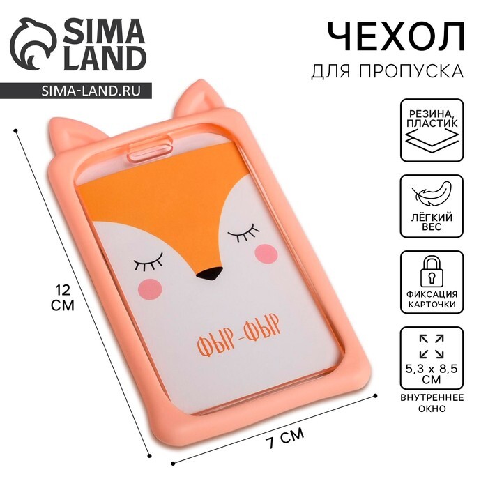 Чехол для бейджа с ушками «Лисичка», 7 х 12 см