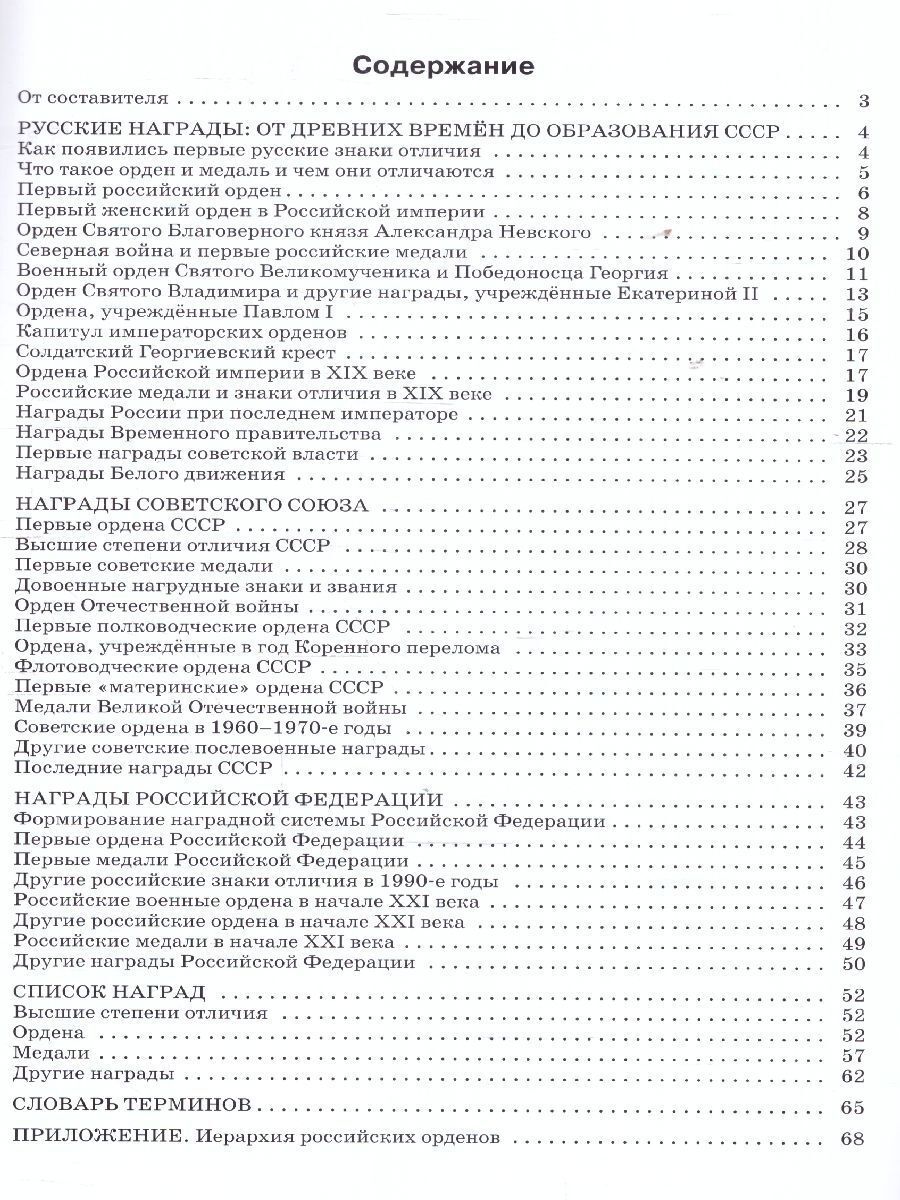 Справочник содержит информацию о российских и советских наградах: от жалованных монет-медалей до современных знаков отличия. Некоторые из представленных в нём наград упоминаются в рамках курса «История России. 6–11 классы», но большинство осталось за рамками курса. Данное издание соответствует требованиям действующих ФГОС ООО и СОО, Концепции нового УМК по отечественной истории и Историко-культурного стандарта. Поможет лучше усвоить материал школьного курса, а также подготовиться к сдаче ОГЭ и ЕГЭ.