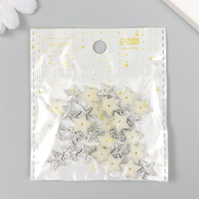 Декор для творчества «Звёзды» серебро, набор 30 шт, 1,2х1,2 см можно использовать в скрапбукинге, создании бижутерии, украшении интерьера, подарков и многом другом.