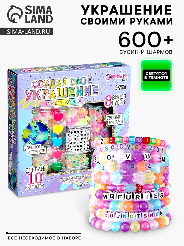 Создавайте оригинальные образы, изюминкой которых станут стильные украшения из бусин, светящихся в темноте! Яркие бусины разных цветов и размеров позволят воплотить самые разные идеи. А бусины с буквами помогут сделать твои украшения не только модными, но и отражающими ваш уникальный внутренний мир! Вдохновляйтесь, фантазируйте, творите!