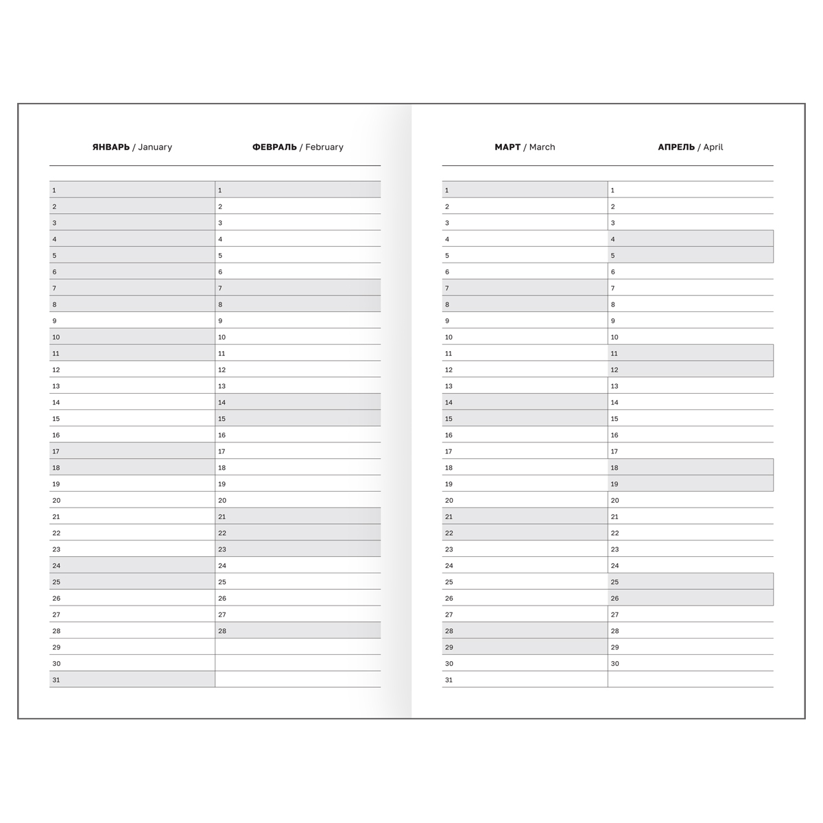 Ежедневник датированный на 2026 год BG серии "Monochrome" - ваше личное пространство для вдохновения и креативности, где каждая страница помогает делать шаги к успеху с лёгкостью и стилем. Ничего лишнего — только четкие линии и утонченная элегантность, которые позволят сосредоточиться на истинных целях.