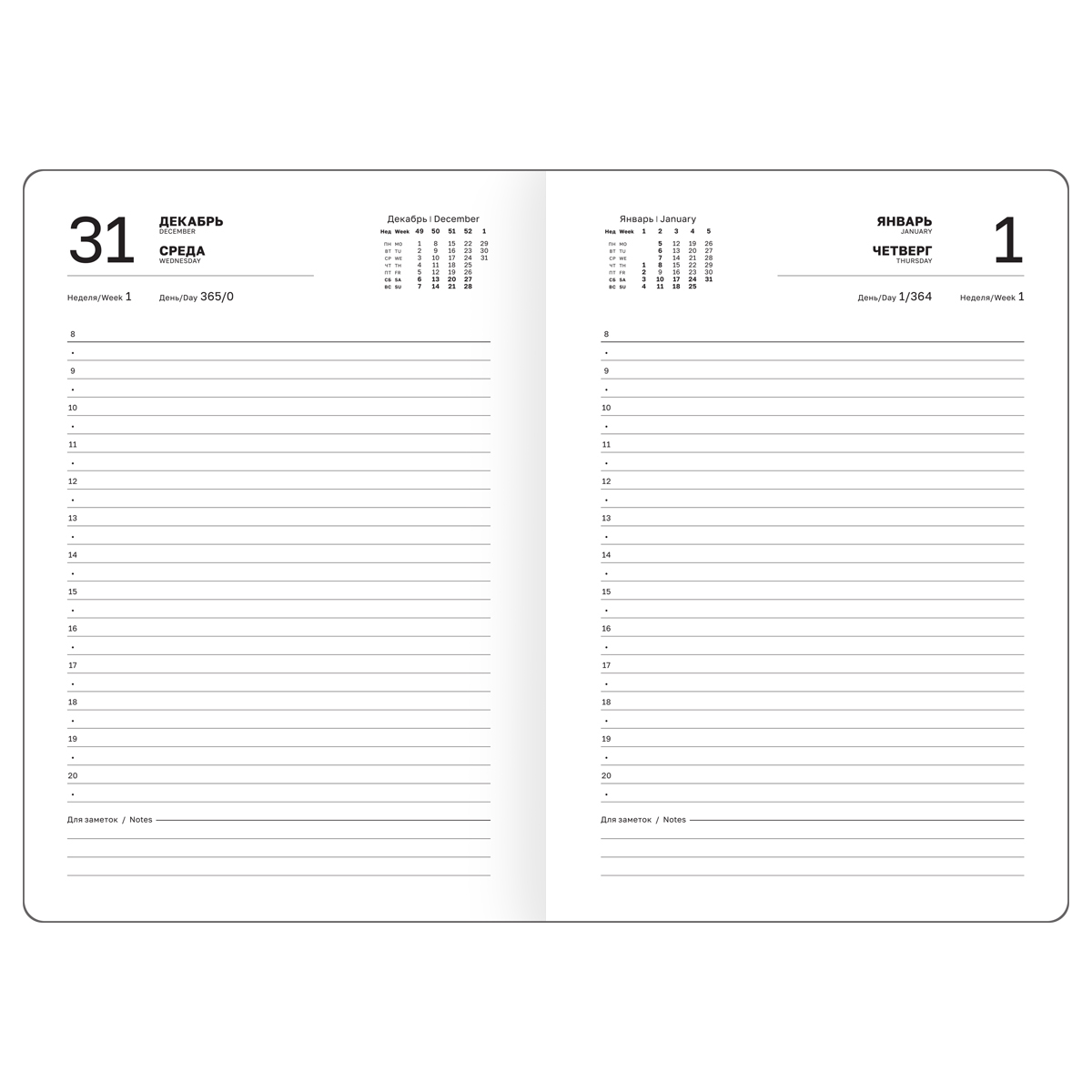 Ежедневник датированный на 2026 год BG серии "Monochrome" - ваше личное пространство для вдохновения и креативности, где каждая страница помогает делать шаги к успеху с лёгкостью и стилем. Ничего лишнего — только четкие линии и утонченная элегантность, которые позволят сосредоточиться на истинных целях.
