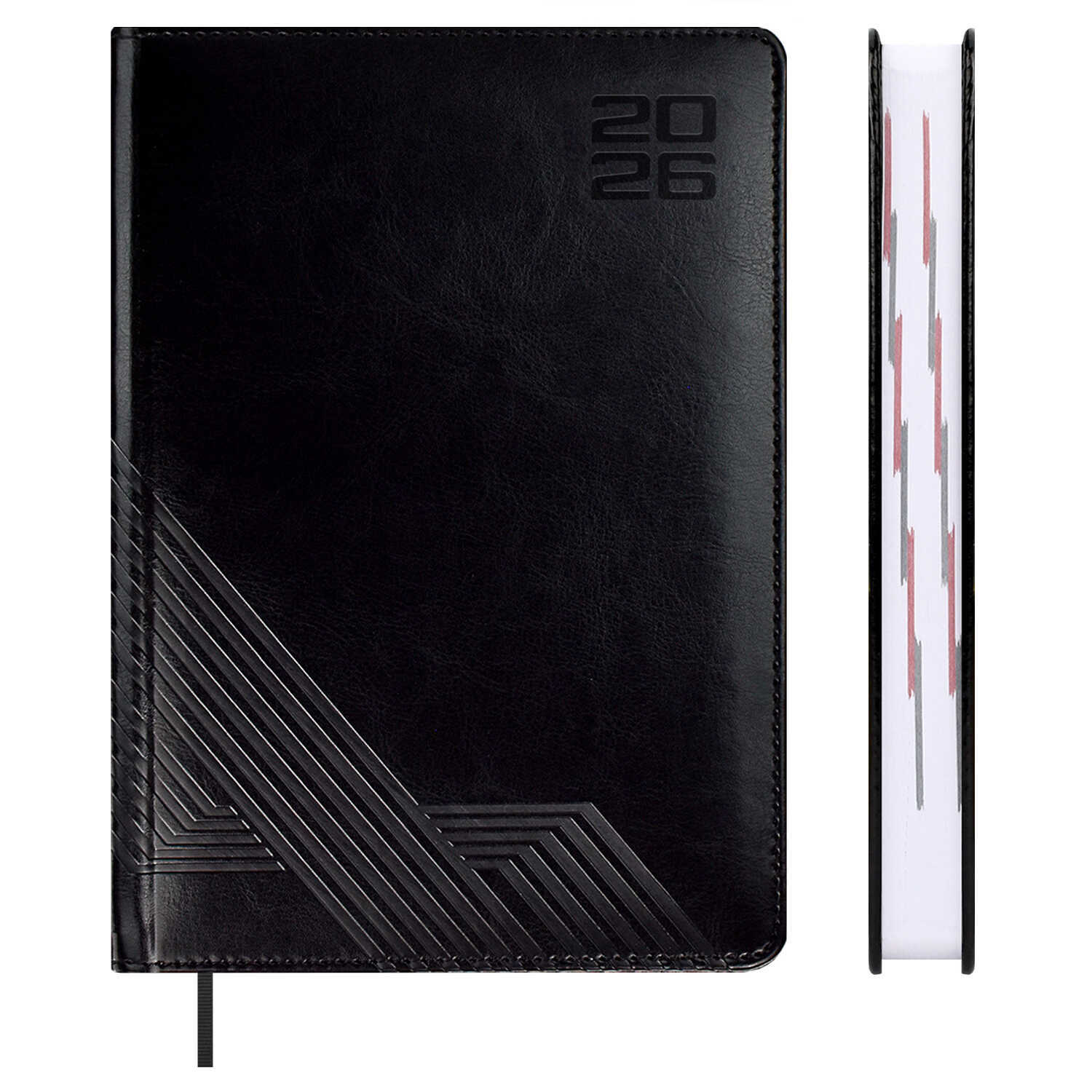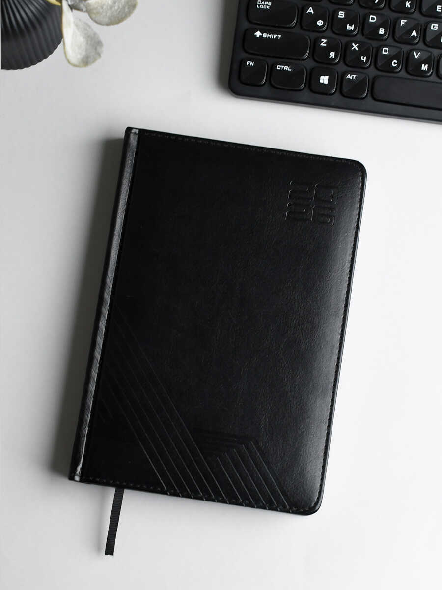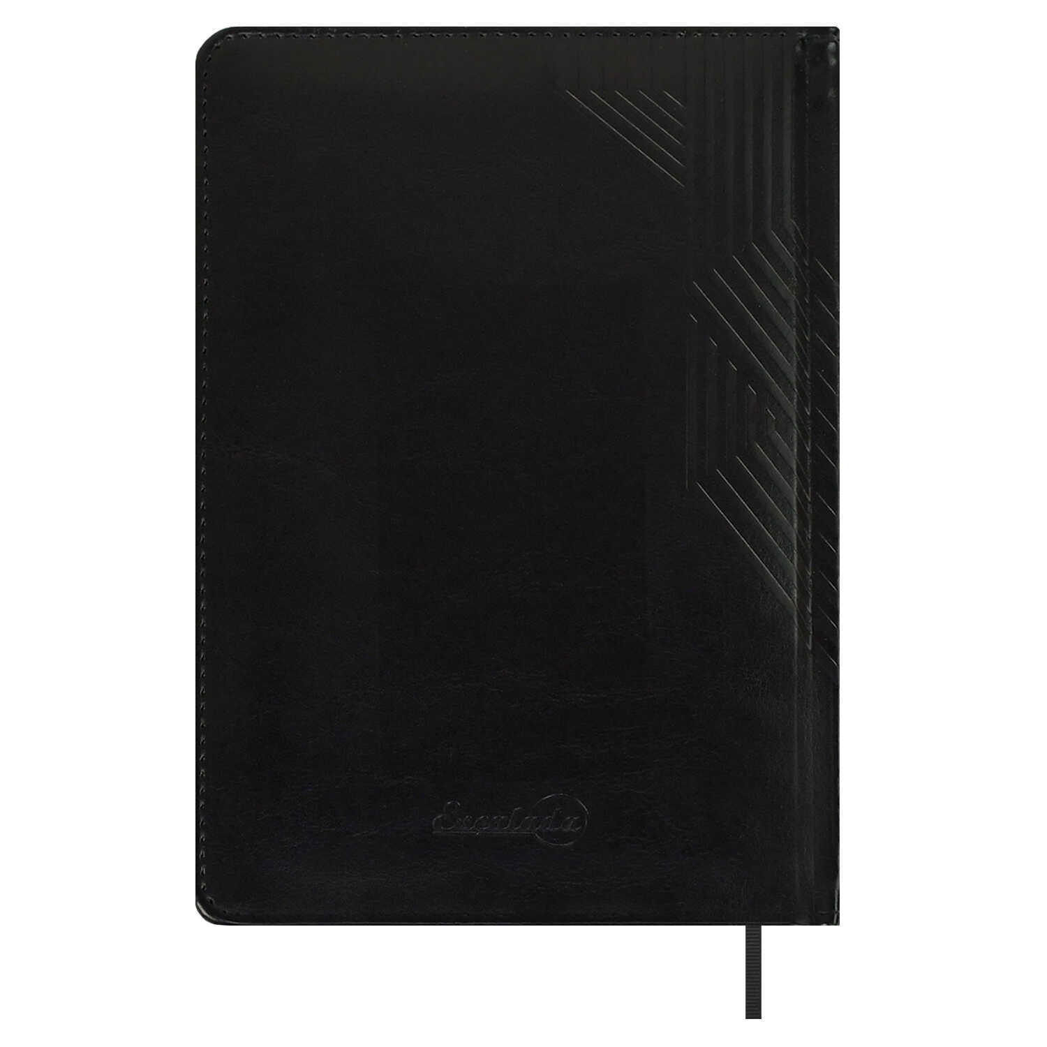 Ежедневник датированный 2026 ESCALADA, А5, 176 л., арт. 70218/ 15 САРИФ ЧЁРНЫЙ (кожзам: 146x211 мм, твёрдый переплёт с поролоном, материал обложки: искусственная кожа "Сариф"; декор: блинтовое тиснение; способ крепления блока: ниткошвейный; вн. блок: 176 л., белый офсет 70 г/м², печать в две краски (линия), справочный материал: есть; перфорация углов блока: есть; закладка/-и: одно ляссе; каптал: есть; форзац: печать в одну краску; персонализация возможна: да; индивидуальная упаковка: ПЭТ-пакет)