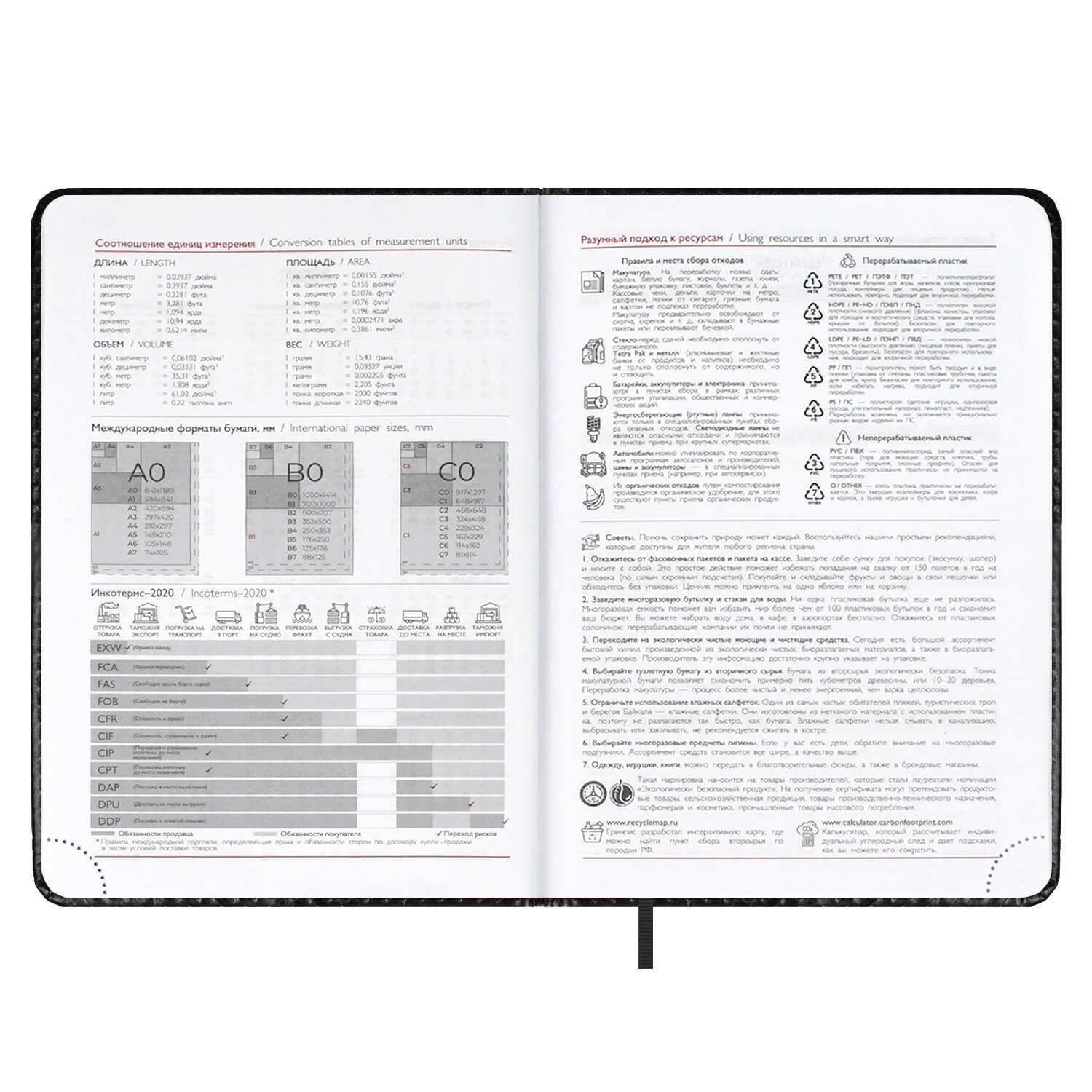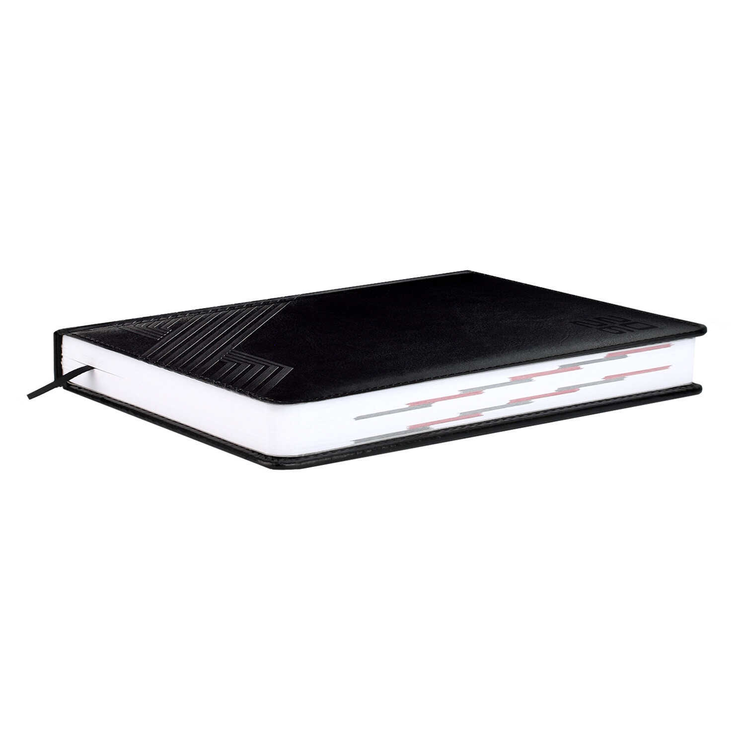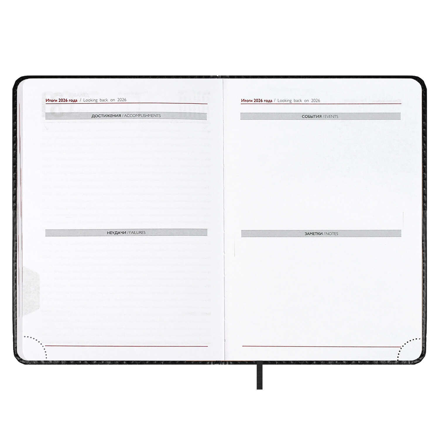 Ежедневник датированный 2026 ESCALADA, А5, 176 л., арт. 70218/ 15 САРИФ ЧЁРНЫЙ (кожзам: 146x211 мм, твёрдый переплёт с поролоном, материал обложки: искусственная кожа "Сариф"; декор: блинтовое тиснение; способ крепления блока: ниткошвейный; вн. блок: 176 л., белый офсет 70 г/м², печать в две краски (линия), справочный материал: есть; перфорация углов блока: есть; закладка/-и: одно ляссе; каптал: есть; форзац: печать в одну краску; персонализация возможна: да; индивидуальная упаковка: ПЭТ-пакет)