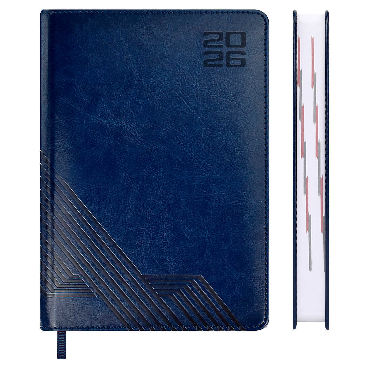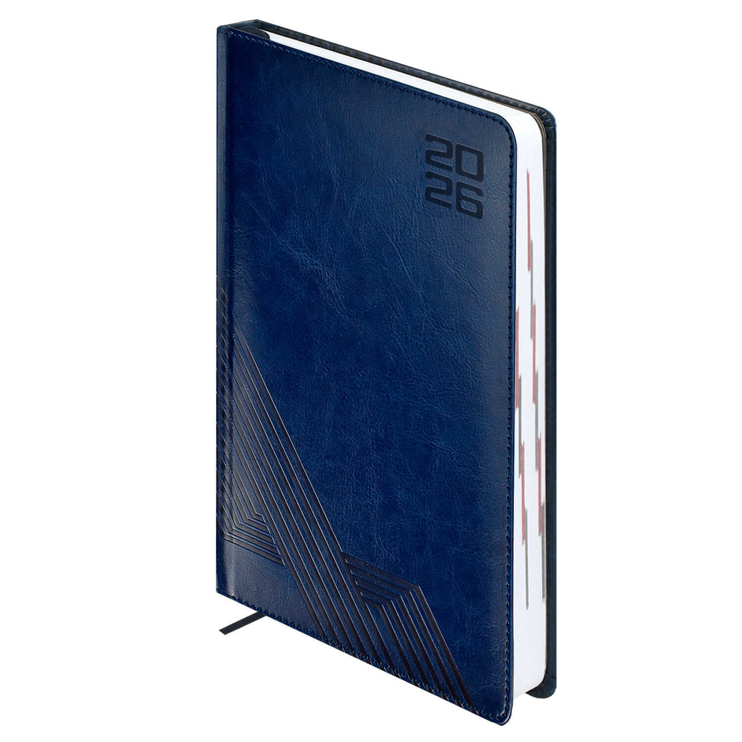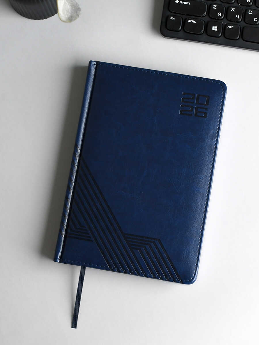 Ежедневник датированный 2026 ESCALADA, А5, 176 л., арт. 70221/ 15 САРИФ СИНИЙ (кожзам: 146x211 мм, твёрдый переплёт с поролоном, материал обложки: искусственная кожа "Сариф"; декор: блинтовое тиснение; способ крепления блока: ниткошвейный; вн. блок: 176 л., белый офсет 70 г/м², печать в две краски (линия), справочный материал: есть; перфорация углов блока: есть; закладка/-и: одно ляссе; каптал: есть; форзац: печать в одну краску; персонализация возможна: да; индивидуальная упаковка: ПЭТ-пакет)