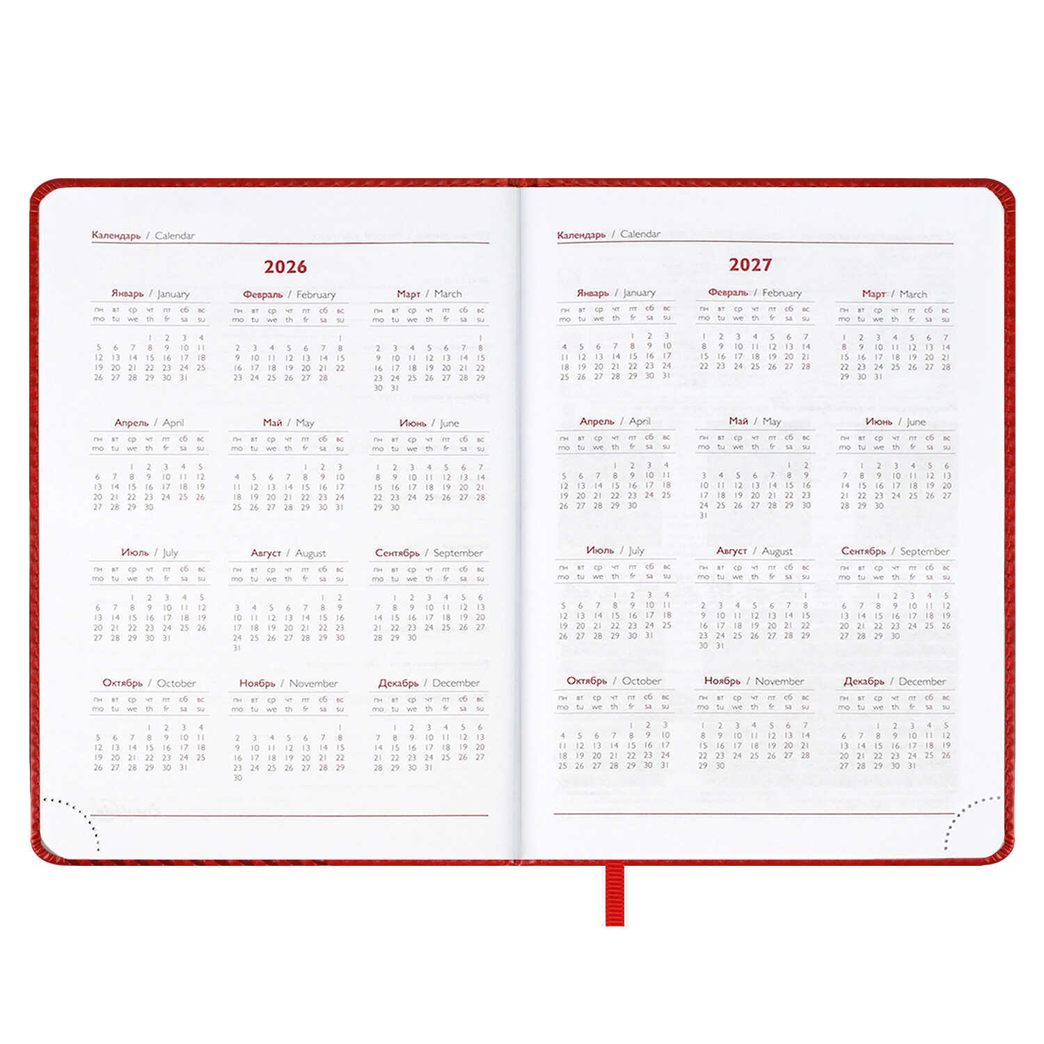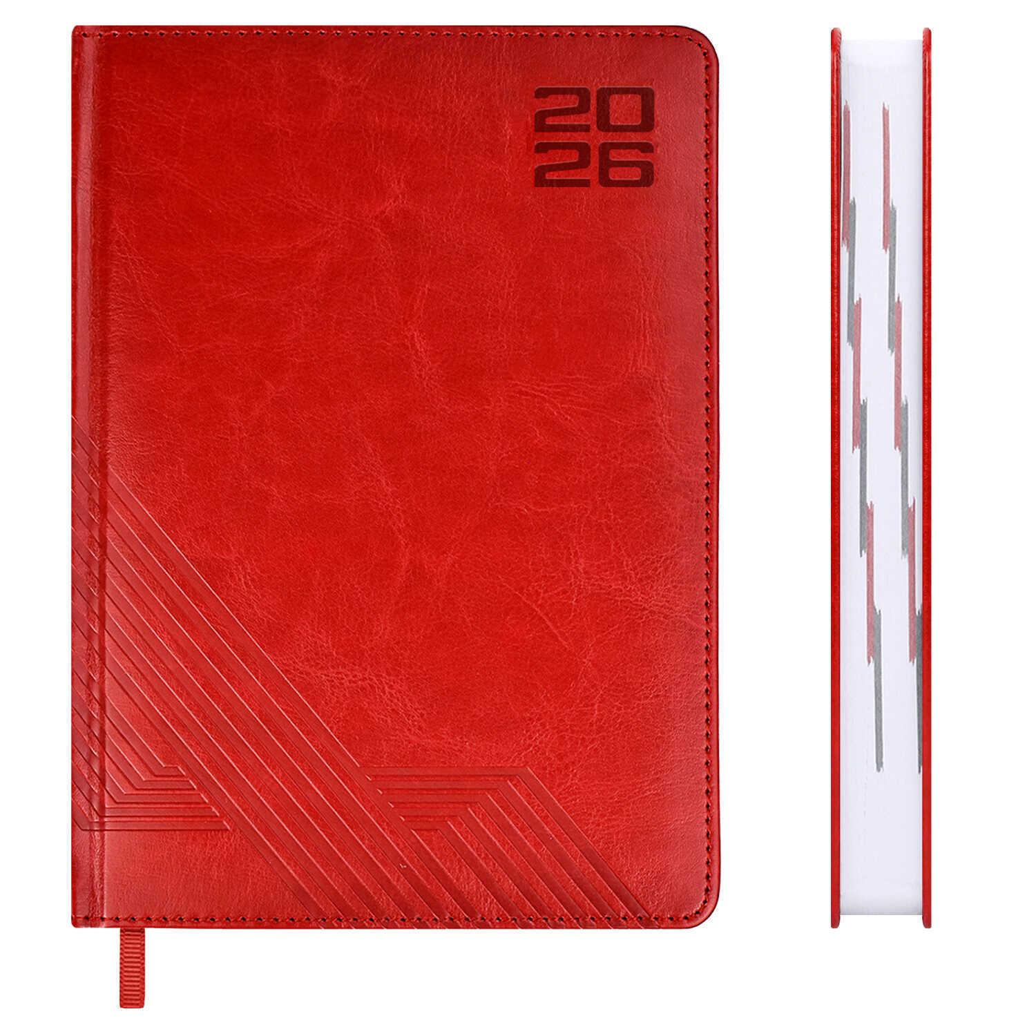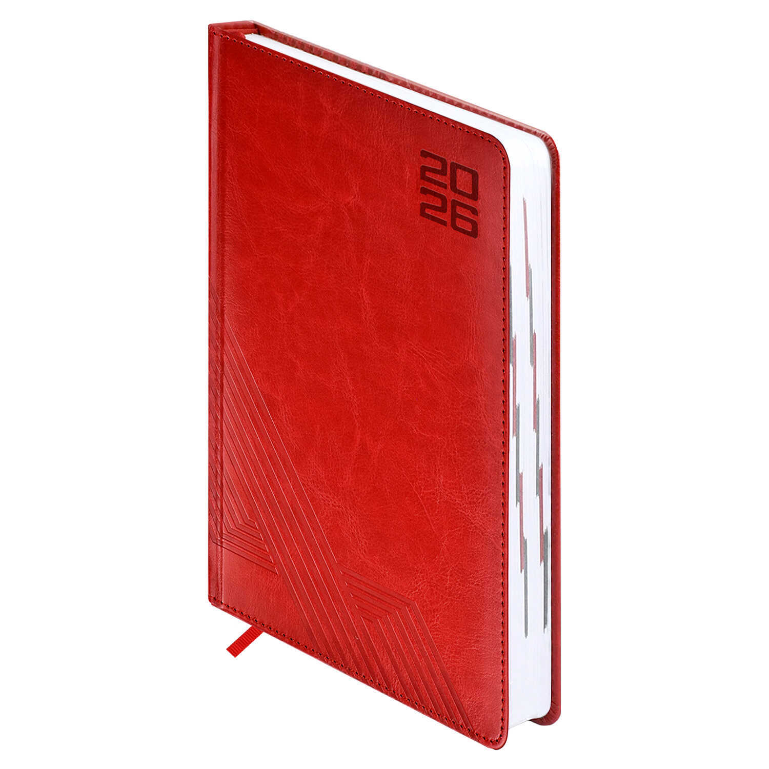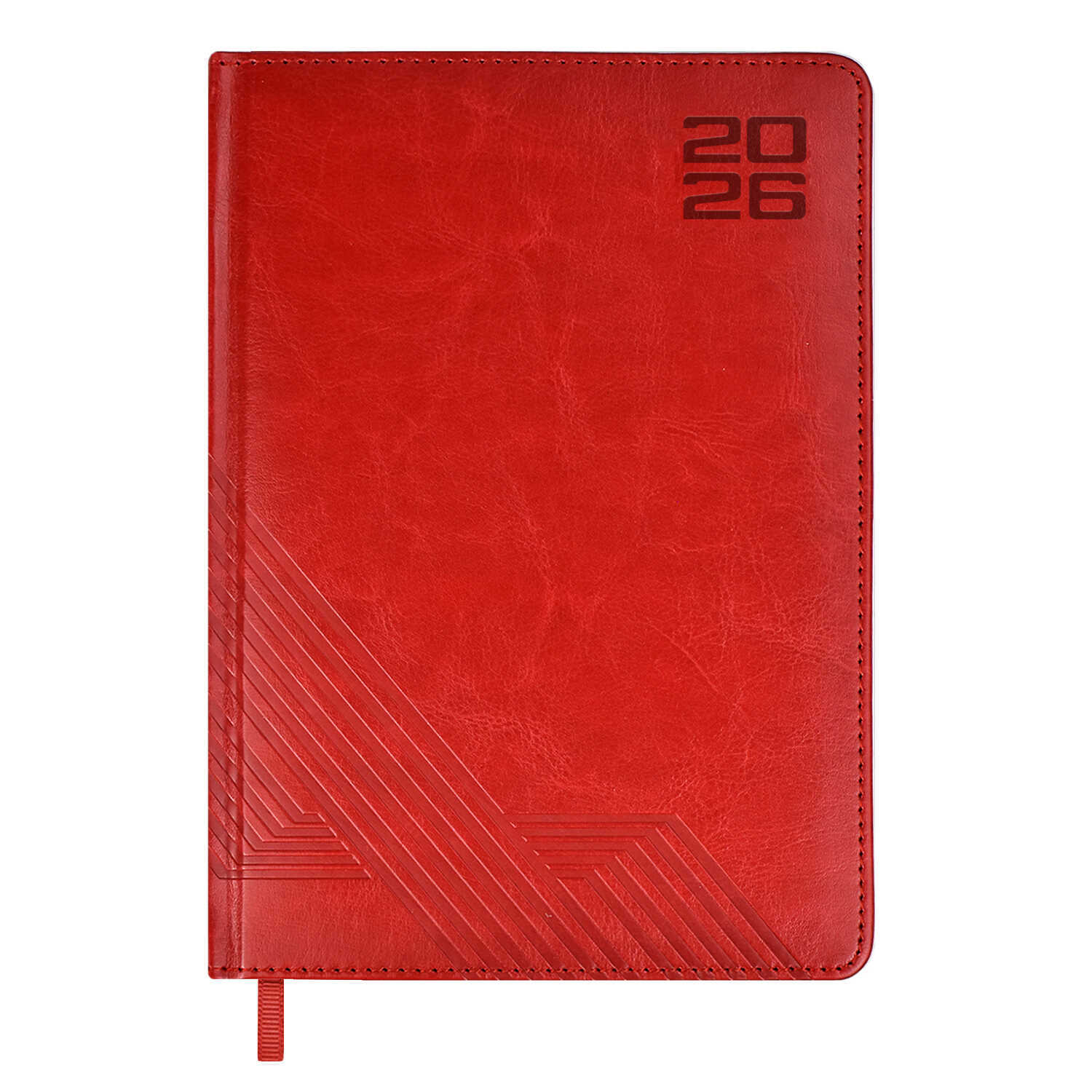 Ежедневник датированный 2026 ESCALADA, А5, 176 л., арт. 70222/ 15 САРИФ КРАСНЫЙ (кожзам: 146x211 мм, твёрдый переплёт с поролоном, материал обложки: искусственная кожа "Сариф"; декор: блинтовое тиснение; способ крепления блока: ниткошвейный; вн. блок: 176 л., белый офсет 70 г/м², печать в две краски (линия), справочный материал: есть; перфорация углов блока: есть; закладка/-и: одно ляссе; каптал: есть; форзац: печать в одну краску; персонализация возможна: да; индивидуальная упаковка: ПЭТ-пакет)