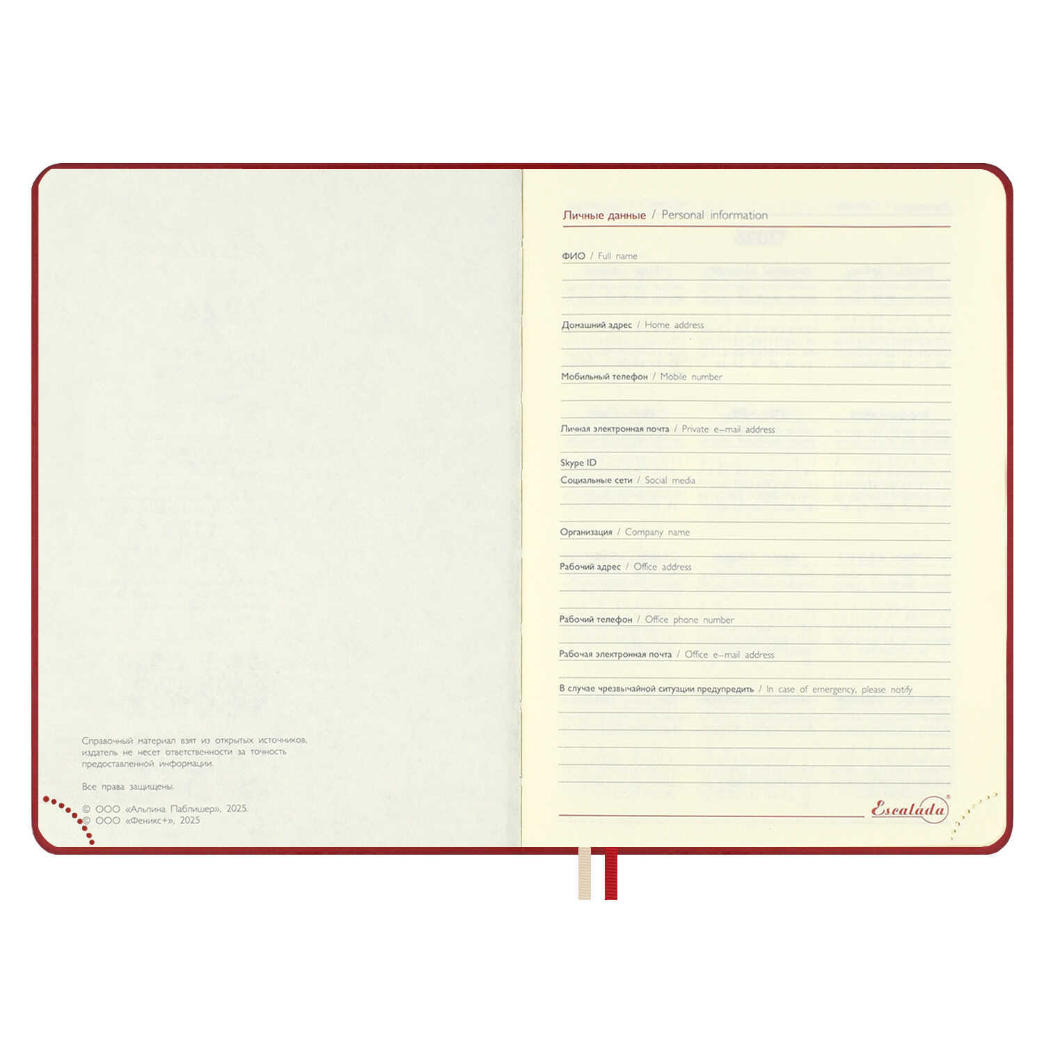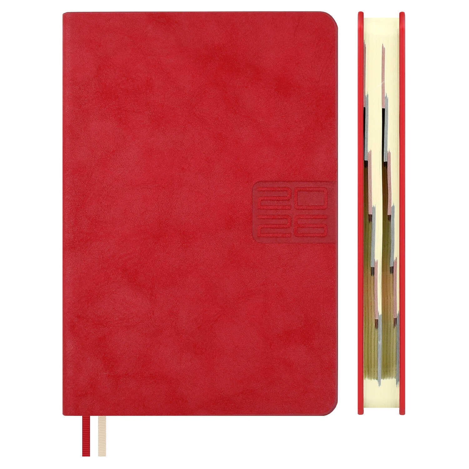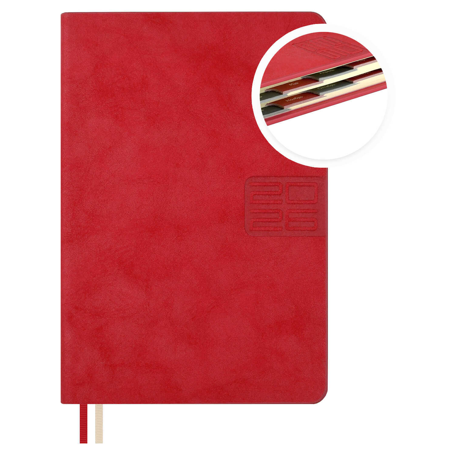 Ежедневник датированный 2026 ESCALADA, #ДУМАЙ КАК МИЛЛИАРДЕР, А6+, 176 л., арт. 70293/ 20 ТИВОЛИ ГЛОСС КРАСНЫЙ (кожзам: 126x174 мм, твёрдый переплёт, запаянный край, материал обложки: искусственная кожа "Тиволи глосс"; декор: блинтовое тиснение; способ крепления блока: ниткошвейный; вн. блок: 176 л., тонированный офсет 70 г/м², печать в две краски (линия), справочный материал: есть; перфорация углов блока: есть; закладка/-и: два ляссе; каптал: есть; форзац: печать пантоном; особенности: вырубка блока по месяцам, в блоке использованы мотивирующие высказывания экстраординарной личности, предпринимателя и миллиардера, титулованного «Провидца века», шоумена и телеведущего, бывшего владельца конкурса красоты «Мисс Вселенная» и дважды президента США – Дональда Трампа; персонализация возможна: да; индивидуальная упаковка: промостикер + ПЭТ-пакет)