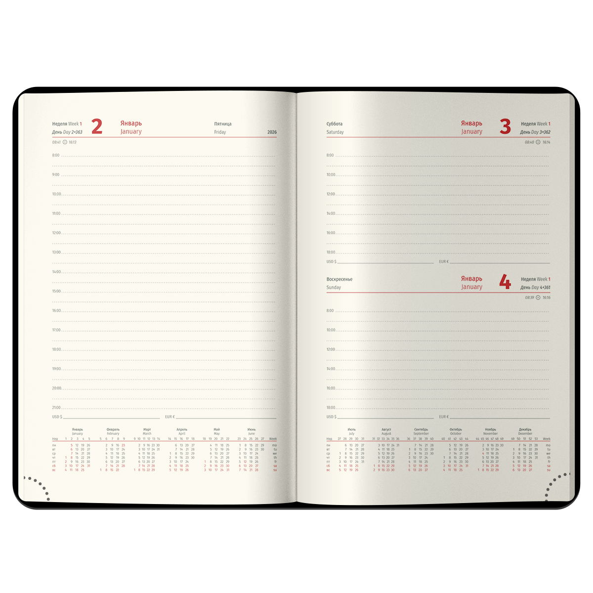Внутренний блок состоит из 184 листов высококачественной кремовой бумаги повышенной плотности 80 г/м² с пантонной печатью в 2 краски. Перфорированные уголки, справочная информация и 2 закладки-ляссе сделают использование ежедневника Berlingo "Vivella Prestige" комфортным. Внутри располагаются отрывные заметки, бланки извещения о ДТП и справочные материалы. 3 комплекта стикеров станут приятным подарком. Датированный ежедневник подходит под персонализацию. Изделие помещено в индивидуальную упаковку, что гарантирует его целостность и сохранность.