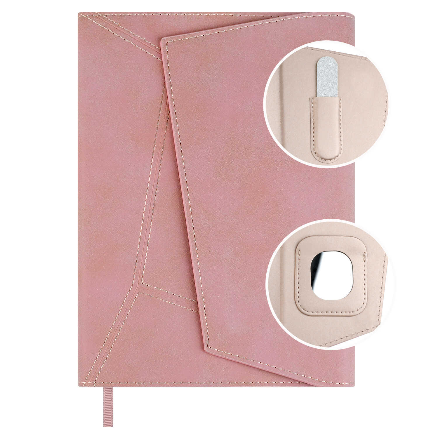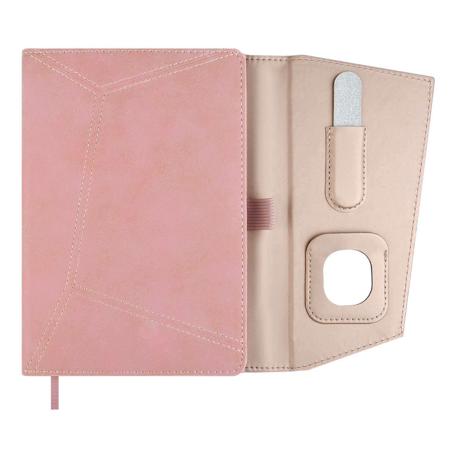 Ежедневник недатированный ESCALADA, А5, 120 л., арт. 70605/ 15 СПИЛОК ДЕЛАВЭ РОЗОВЫЙ (кожзам: 146x211 мм, твёрдый переплёт, запаянный край, материал обложки: искусственная кожа "Спилок делавэ"; способ крепления блока: ниткошвейный; вн. блок: 120 л., серый офсет 70 г/м², печать в одну краску (линия), справочный материал: есть; перфорация углов блока: нет; отделка среза: окрашивание пантоном; закладка/-и: одно ляссе, каптал: есть; форзац: печать пантоном, особенности: зеркальце и пилка для ногтей с оборотной стороны магнитного клапана, комбинированные материалы, магнитный клапан, петля для ручки; персонализация возможна: да; индивидуальная упаковка: промостикер + подарочная картонная коробка с ПВХ-крышкой + ПЭТ-пакет)