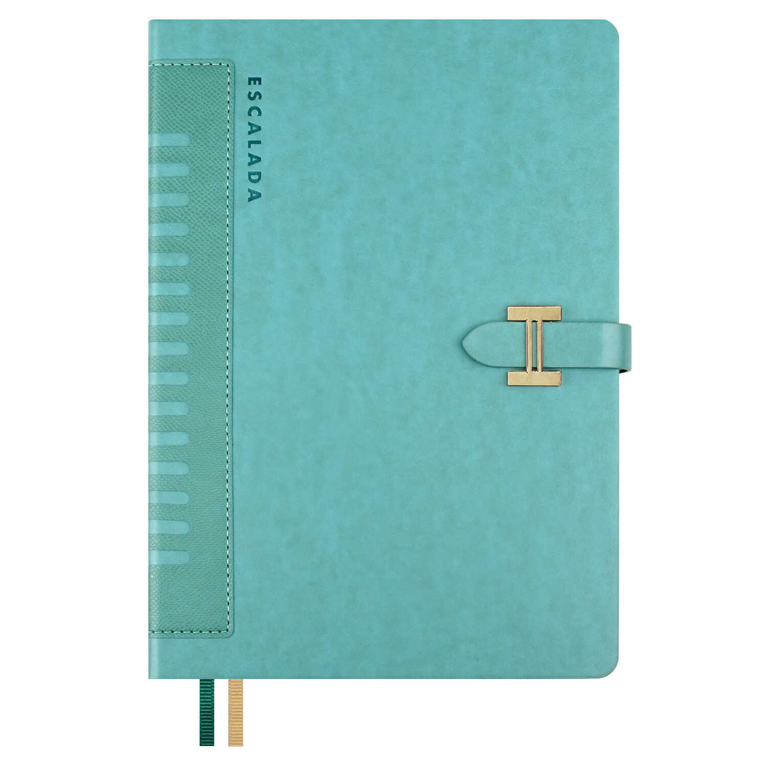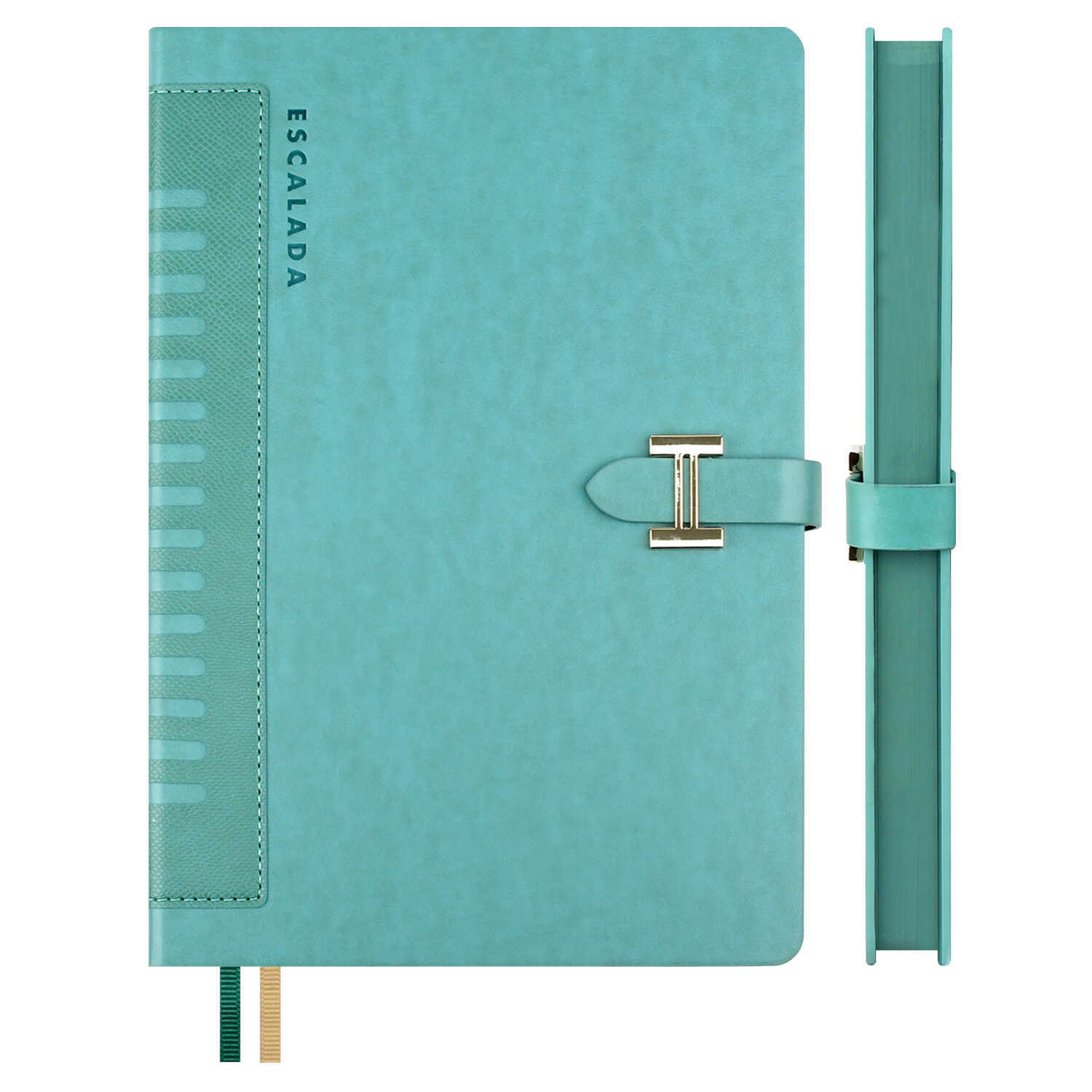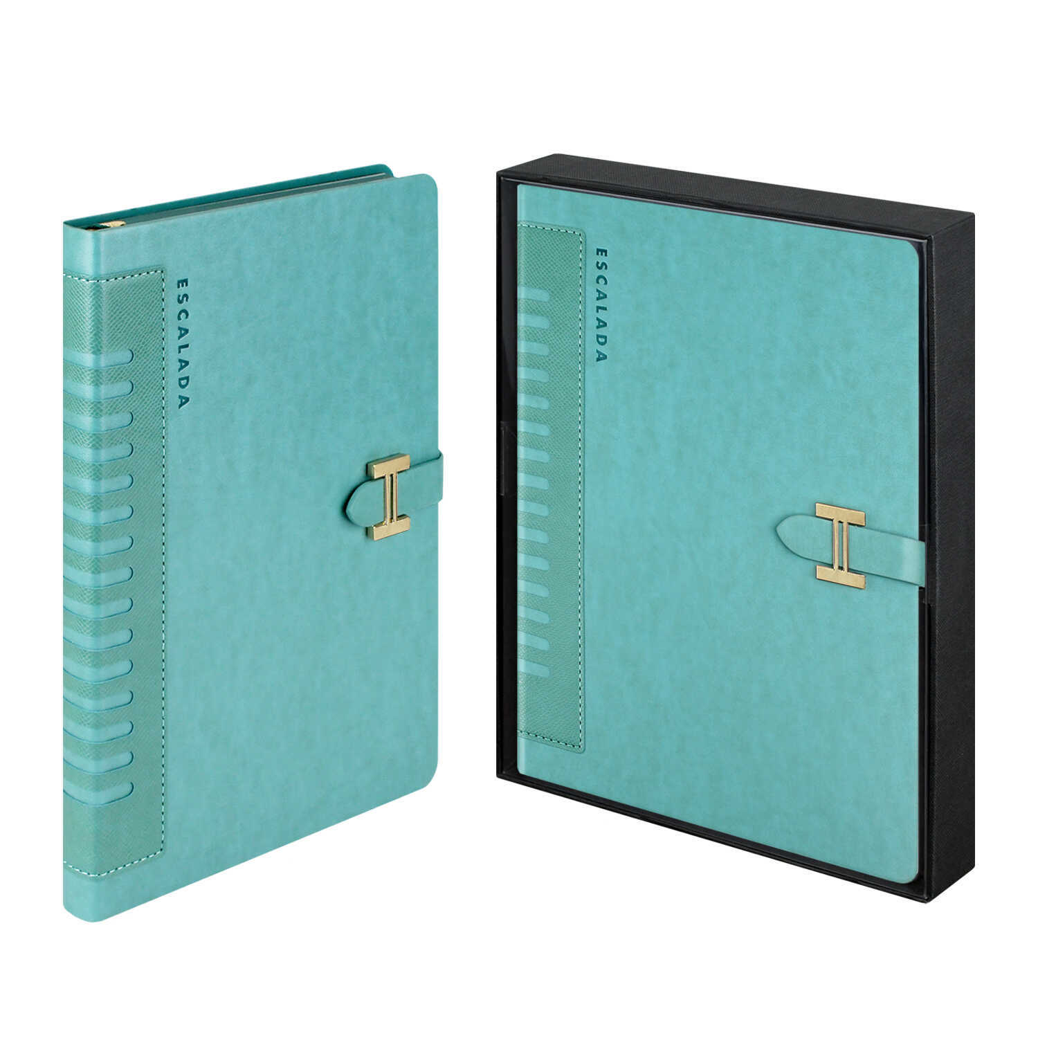 Ежедневник недатированный ESCALADA, А5+, 160 л., арт. 70580/ 10 ПРИСТИН МЯТНЫЙ (кожзам: 175x245 мм, твёрдый переплёт, материал обложки: искусственная кожа "Пристин", искусственная кожа "Снейк"; способ крепления блока: ниткошвейный; декор: блинтовое тиснение; вн. блок: 160 л., кремовый офсет 70 г/м², печать в одну краску (линия), справочный материал: есть; перфорация углов блока: нет; отделка среза: окрашивание пантоном; закладка/-и: два ляссе, каптал: есть; форзац: печать пантоном, особенности: застёжка "хляст в петле", комбинированные материалы; персонализация возможна: да; индивидуальная упаковка: промостикер + подарочная картонная коробка с ПВХ-крышкой + ПЭТ-пакет)