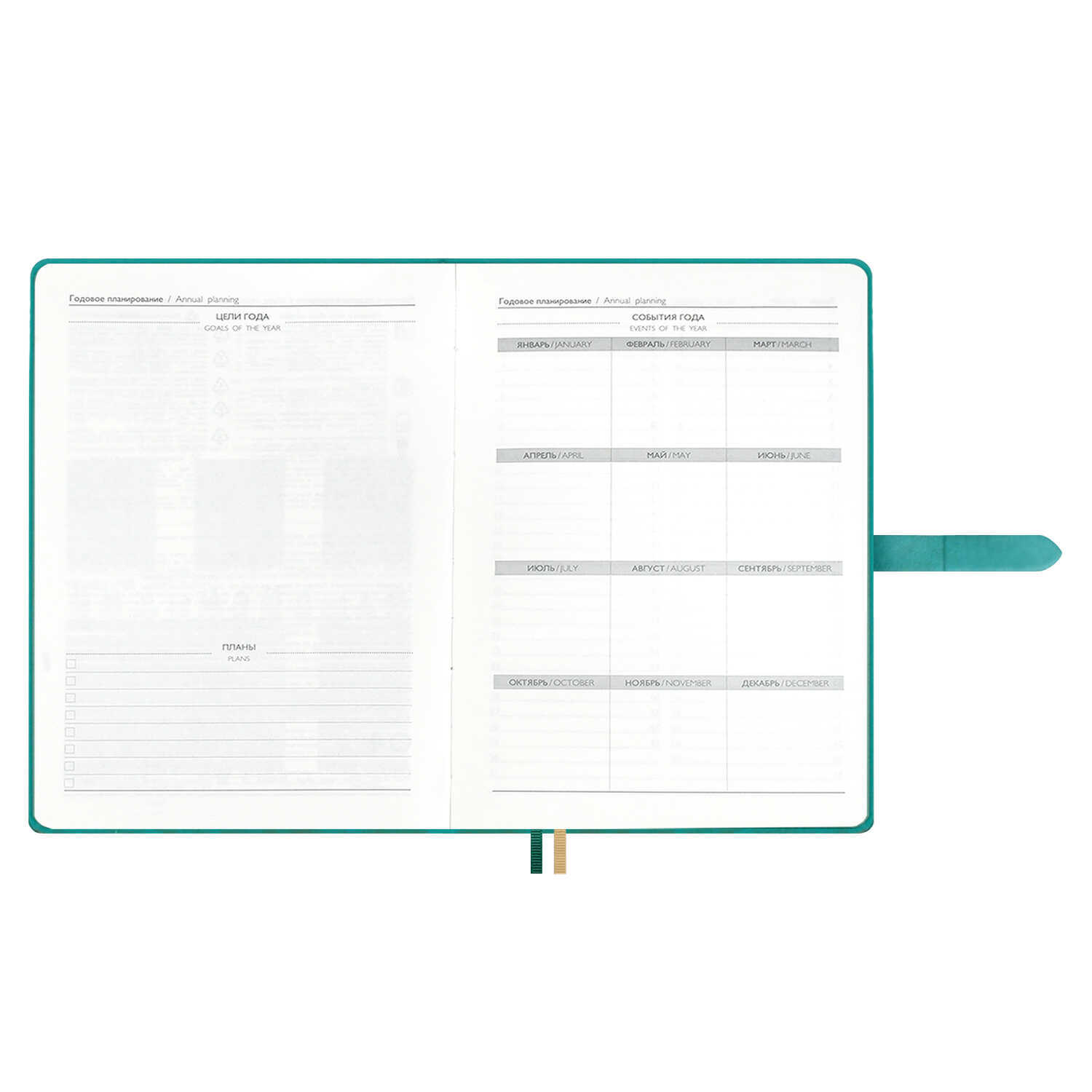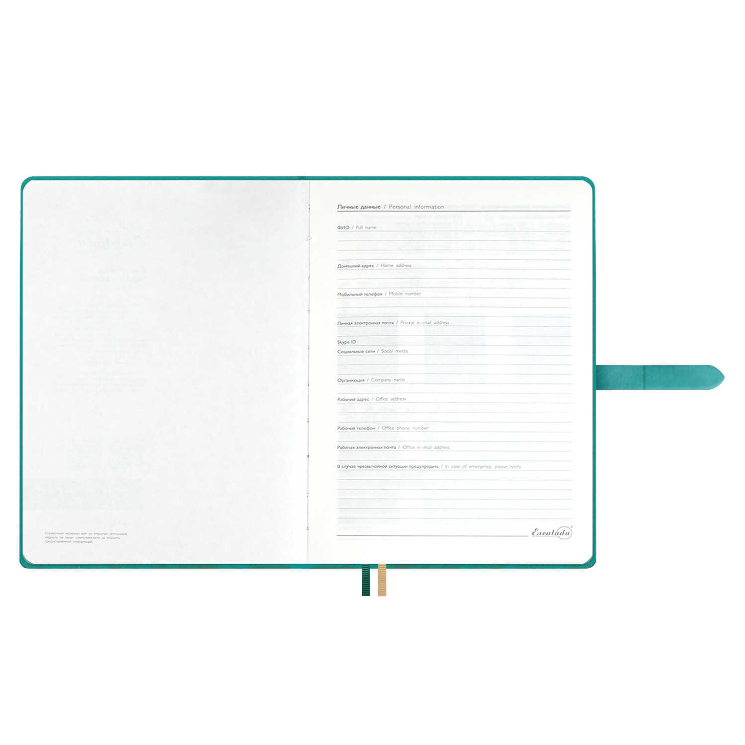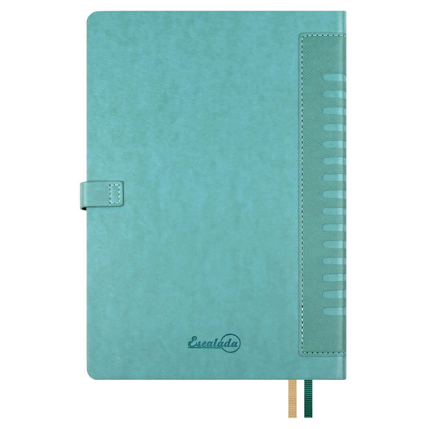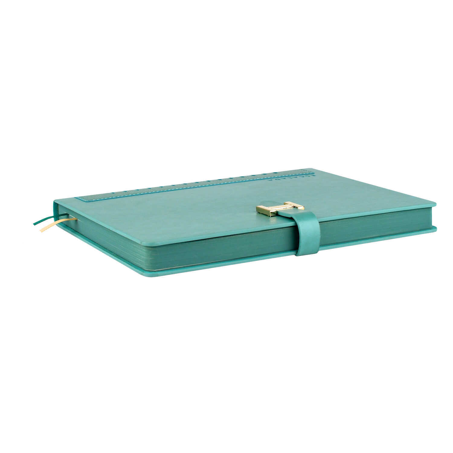 Ежедневник недатированный ESCALADA, А5+, 160 л., арт. 70580/ 10 ПРИСТИН МЯТНЫЙ (кожзам: 175x245 мм, твёрдый переплёт, материал обложки: искусственная кожа "Пристин", искусственная кожа "Снейк"; способ крепления блока: ниткошвейный; декор: блинтовое тиснение; вн. блок: 160 л., кремовый офсет 70 г/м², печать в одну краску (линия), справочный материал: есть; перфорация углов блока: нет; отделка среза: окрашивание пантоном; закладка/-и: два ляссе, каптал: есть; форзац: печать пантоном, особенности: застёжка "хляст в петле", комбинированные материалы; персонализация возможна: да; индивидуальная упаковка: промостикер + подарочная картонная коробка с ПВХ-крышкой + ПЭТ-пакет)