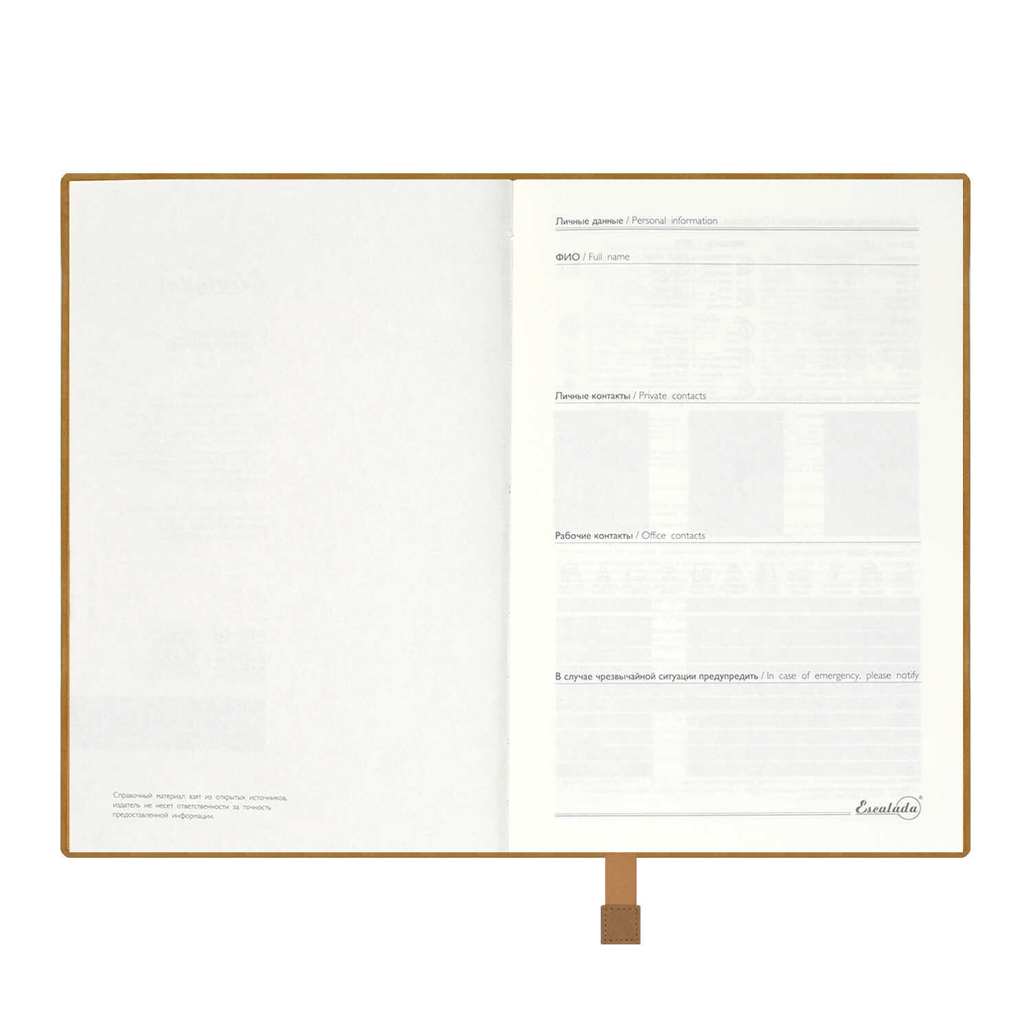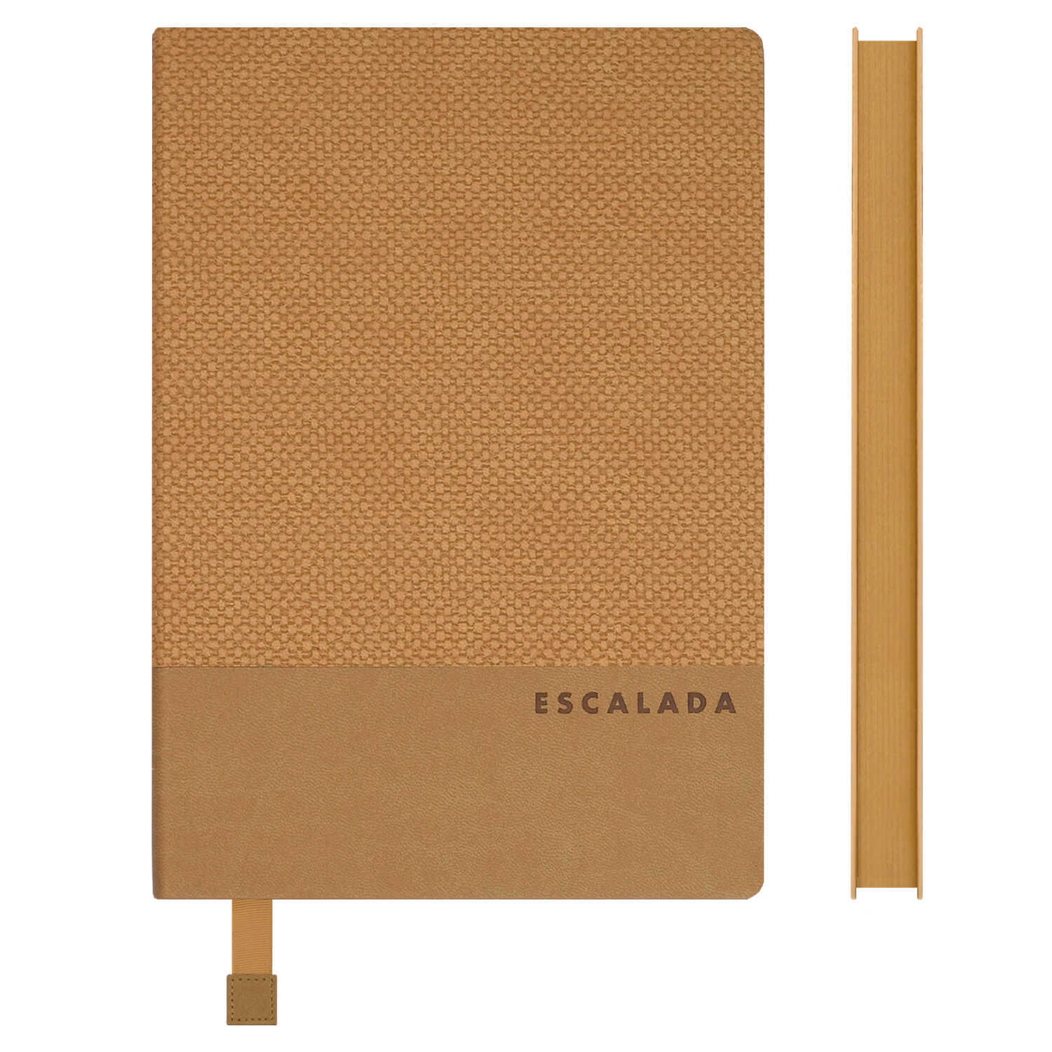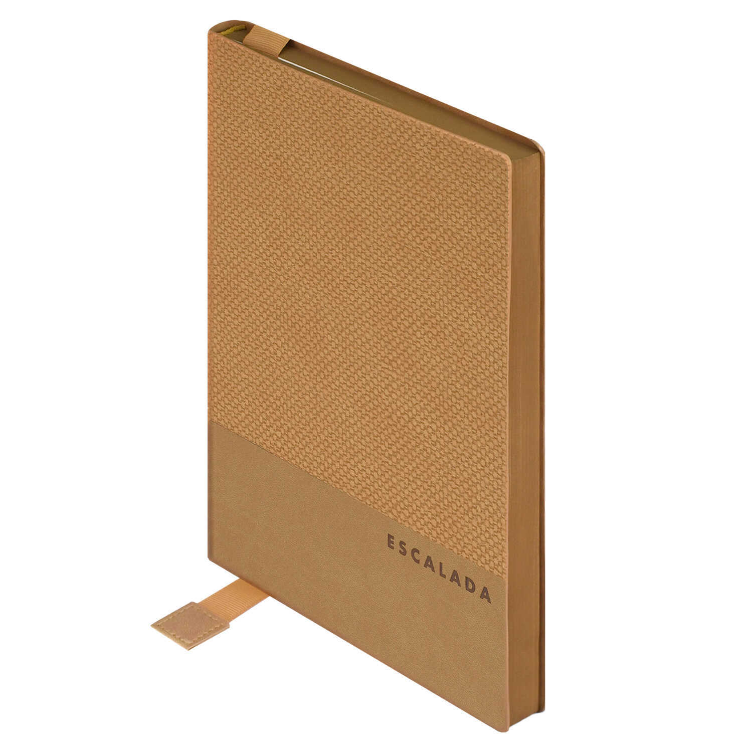 Ежедневник недатированный ESCALADA, А5, 160 л., арт. 70657/ 15 ПИКЕ МАКРО КОРИЧНЕВЫЙ (кожзам: 146x211 мм, мягкий переплёт, запаянный край, материал обложки: искусственная кожа "Виннер", искусственная кожа "Пике макро"; способ крепления блока: ниткошвейный; декор: блинтовое тиснение; вн. блок: 160 л., кремовый офсет 70 г/м², печать в одну краску (линия), справочный материал: есть; перфорация углов блока: нет; отделка среза: окрашивание пантоном; закладка/-и: одно ляссе, каптал: есть; форзац: печать пантоном, особенности: комбинированные материалы, ляссе с аппликацией из искусственной кожи ; персонализация возможна: да; индивидуальная упаковка: промостикер + ПЭТ-пакет)