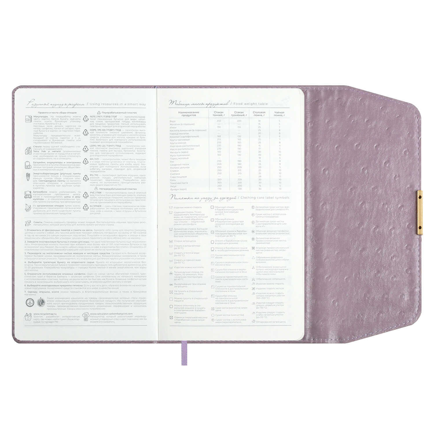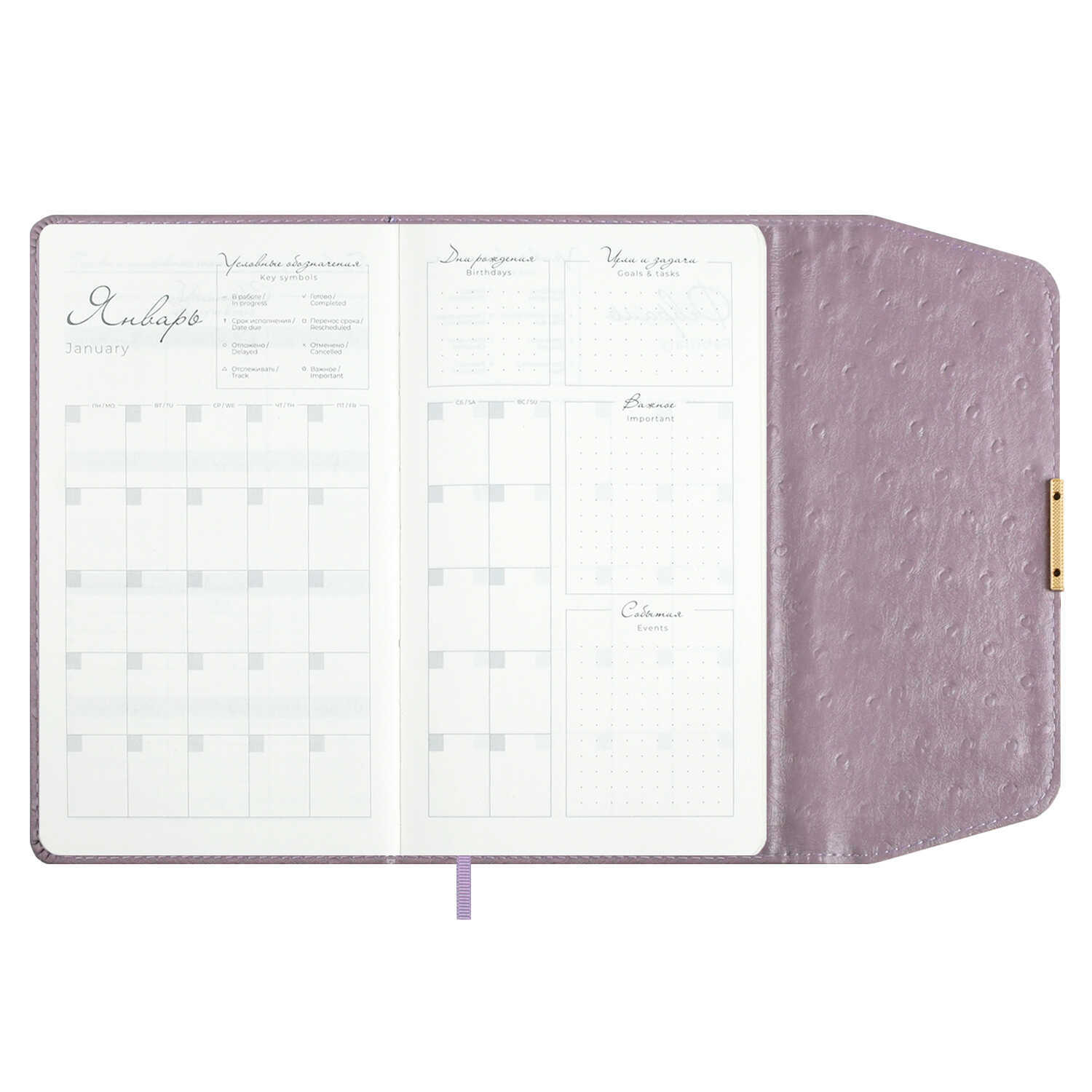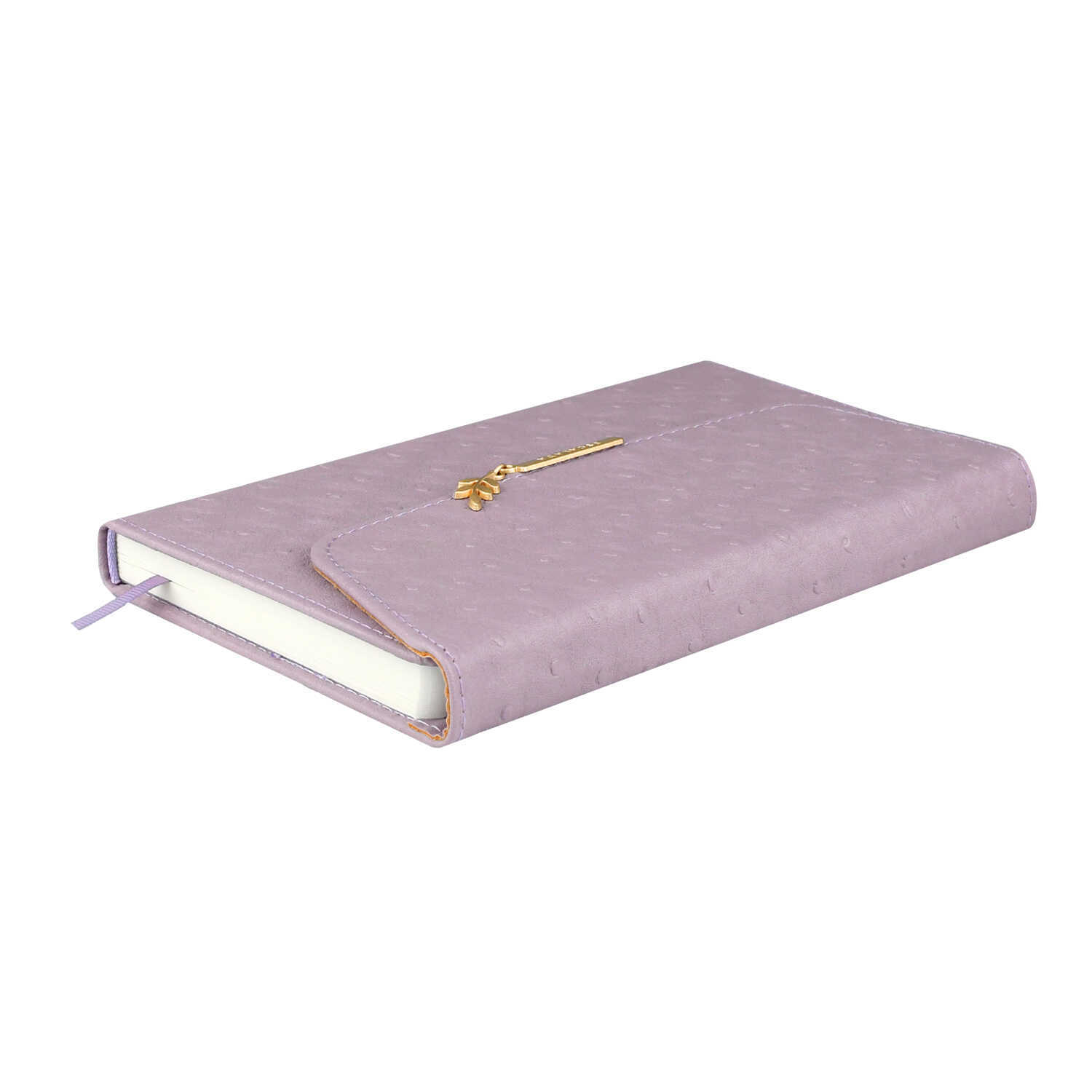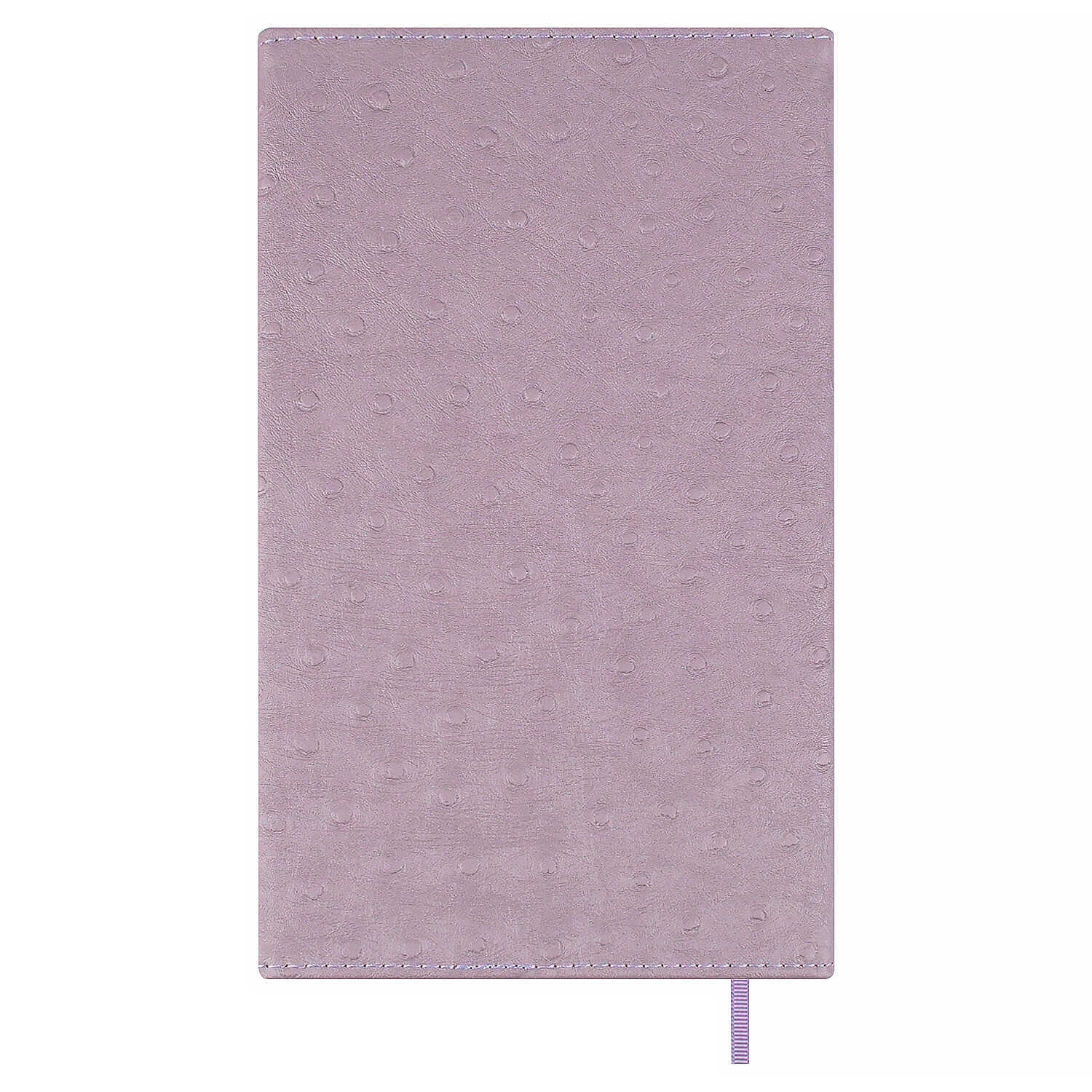 Ежедневник недатированный ESCALADA, А5, 160 л., арт. 70670/ 15 СТРАУС ФИОЛЕТОВЫЙ (кожзам: 126х211 мм, твёрдый переплёт, материал обложки: искусственная кожа "Страус"; способ крепления блока: ниткошвейный; декор: металлический шильд с декоративной металлической фигуркой; вн. блок: 160 л., кремовый офсет 70 г/м², печать в одну краску (линия), справочный материал: есть; перфорация углов блока: нет; отделка среза: окрашивание пантоном; закладка/-и: одно ляссе, каптал: есть; форзац: печать пантоном, тиснение фольгой, особенности: карман-уголок внутренний, магнитный клапан; персонализация возможна: да; индивидуальная упаковка: ПЭТ-пакет)