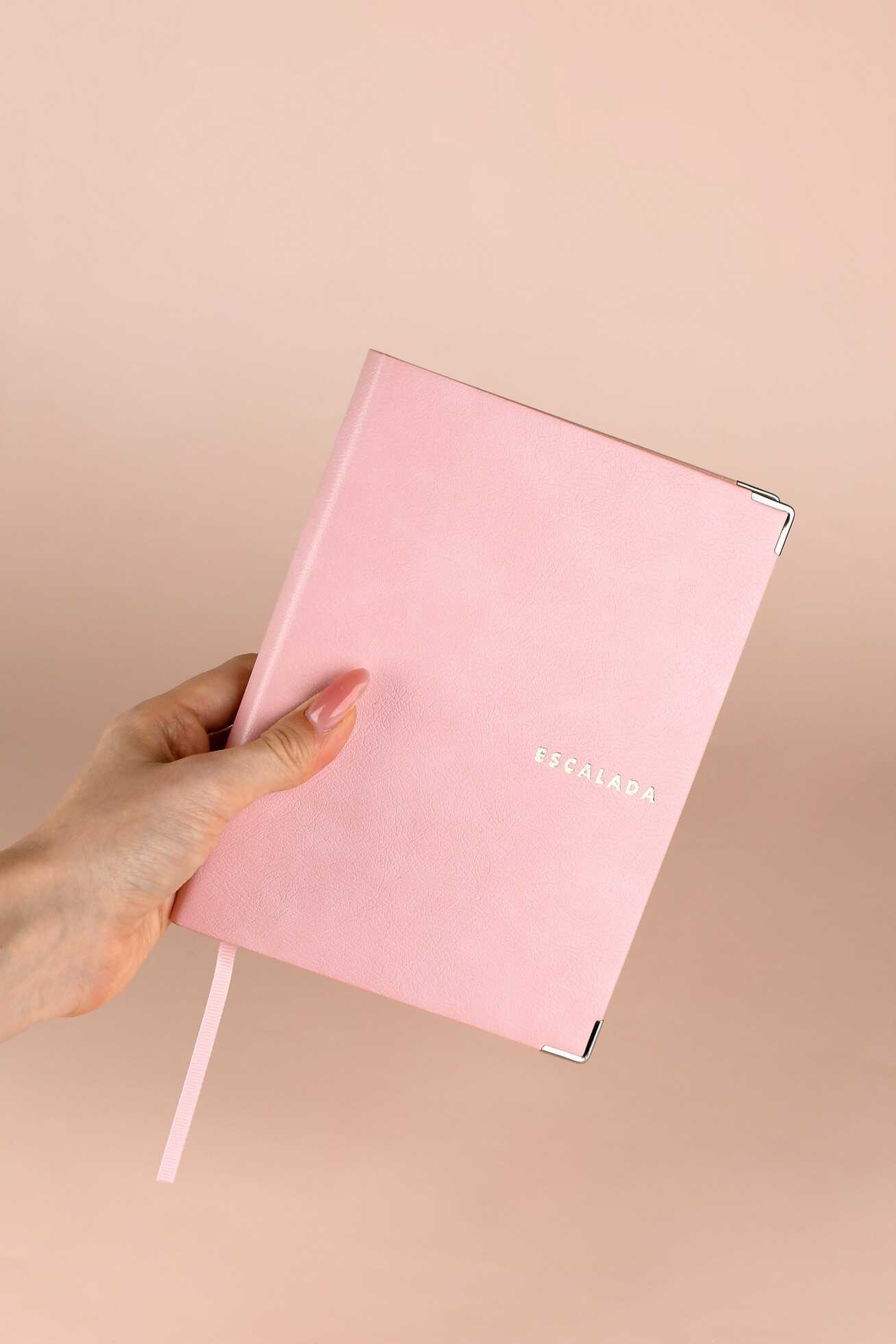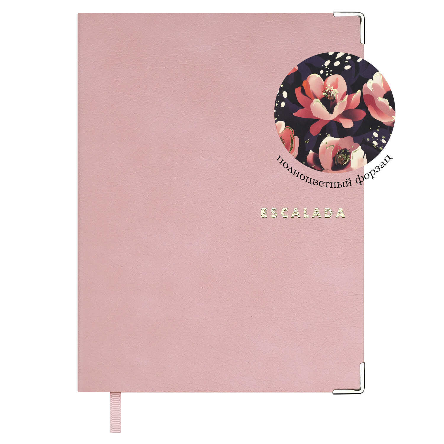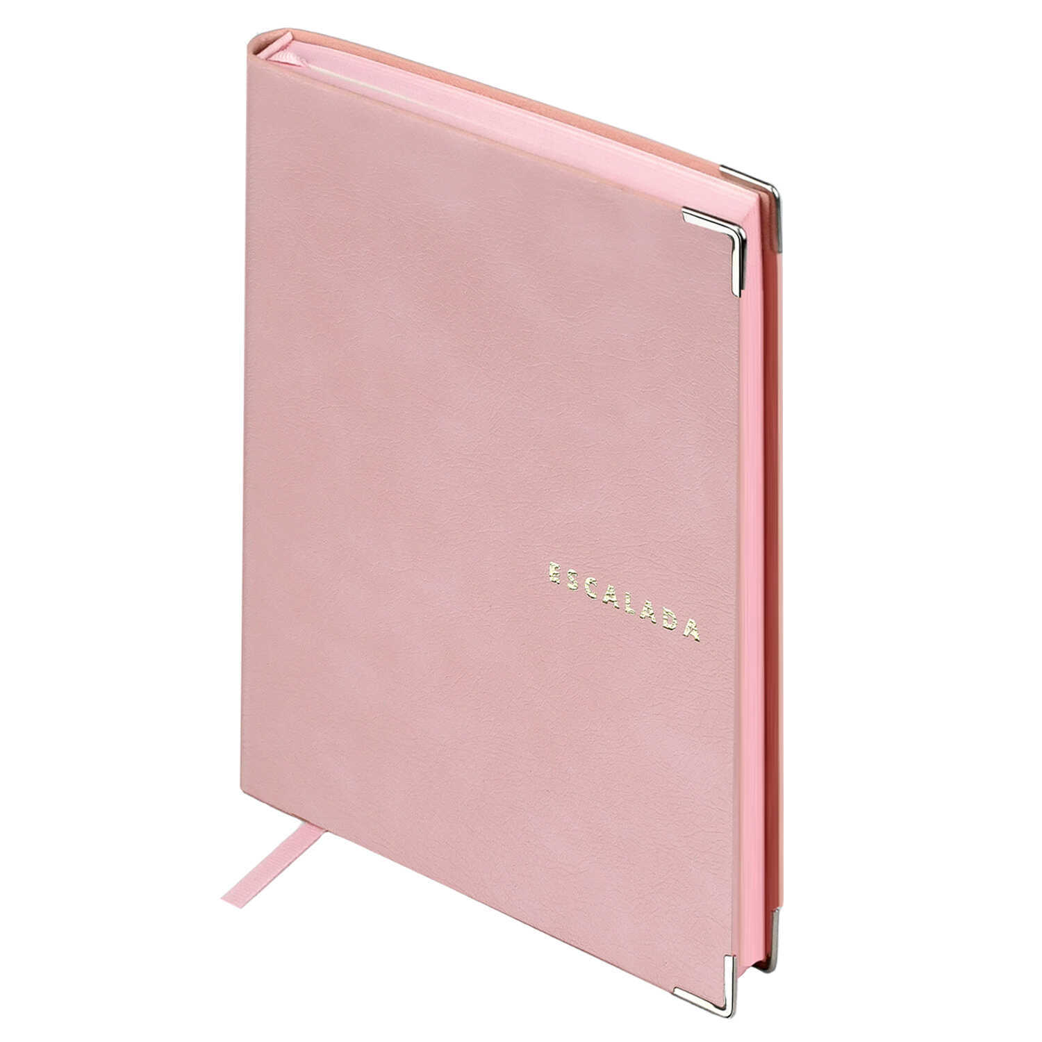 Ежедневник недатированный ESCALADA, А6+, 160 л., арт. 70684/ 20 АНРИ РОЗОВЫЙ (кожзам: 126х174 мм, интегральный переплёт, материал обложки: искусственная кожа "Анри"; способ крепления блока: ниткошвейный; декор: металлические уголки, тиснение фольгой; вн. блок: 160 л., кремовый офсет 70 г/м², печать в одну краску (линия), справочный материал: есть; перфорация углов блока: нет; отделка среза: окрашивание пантоном; закладка/-и: одно ляссе, каптал: есть; форзац: полноцветная печать, тиснение фольгой, персонализация возможна: да; индивидуальная упаковка: промостикер + ПЭТ-пакет)