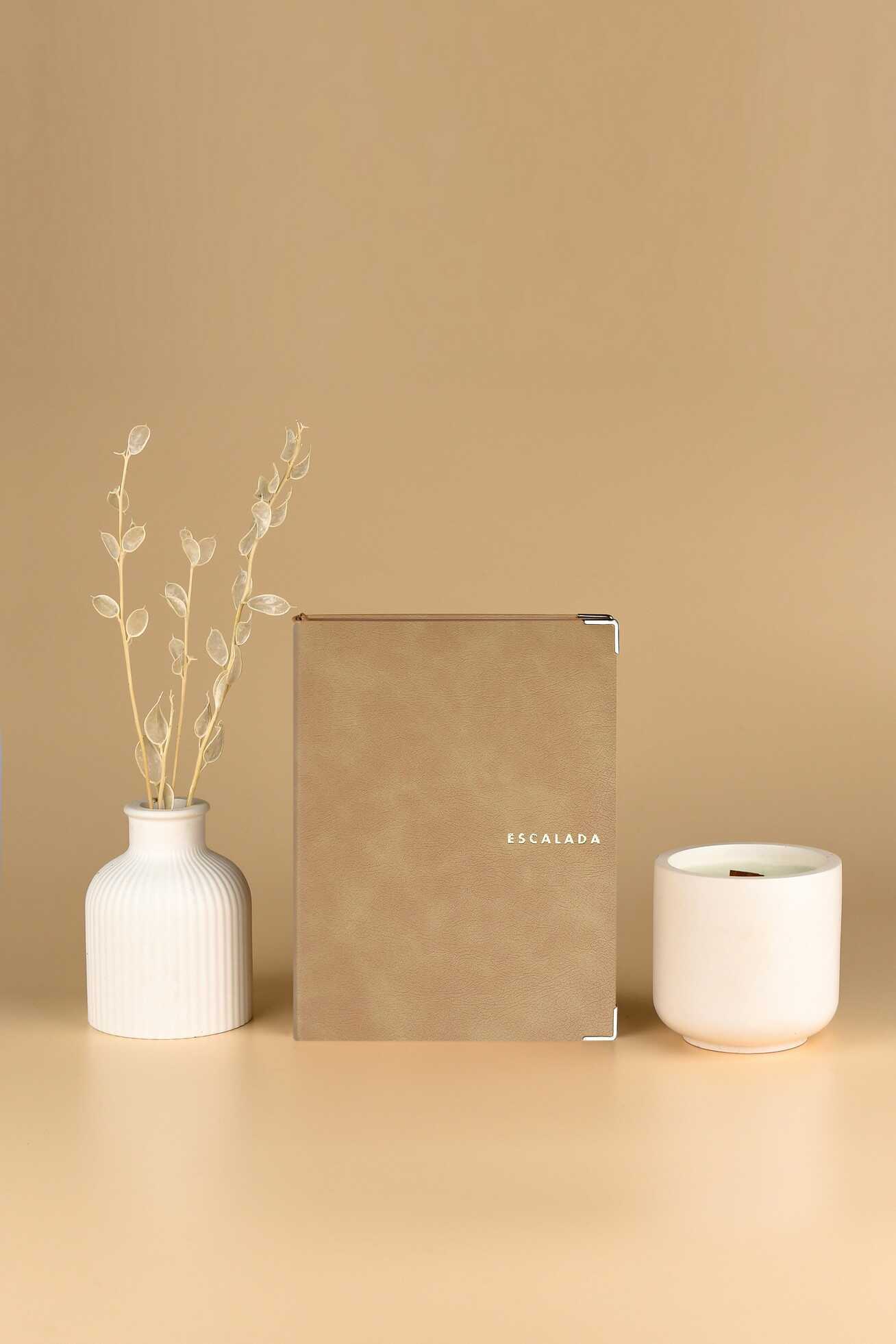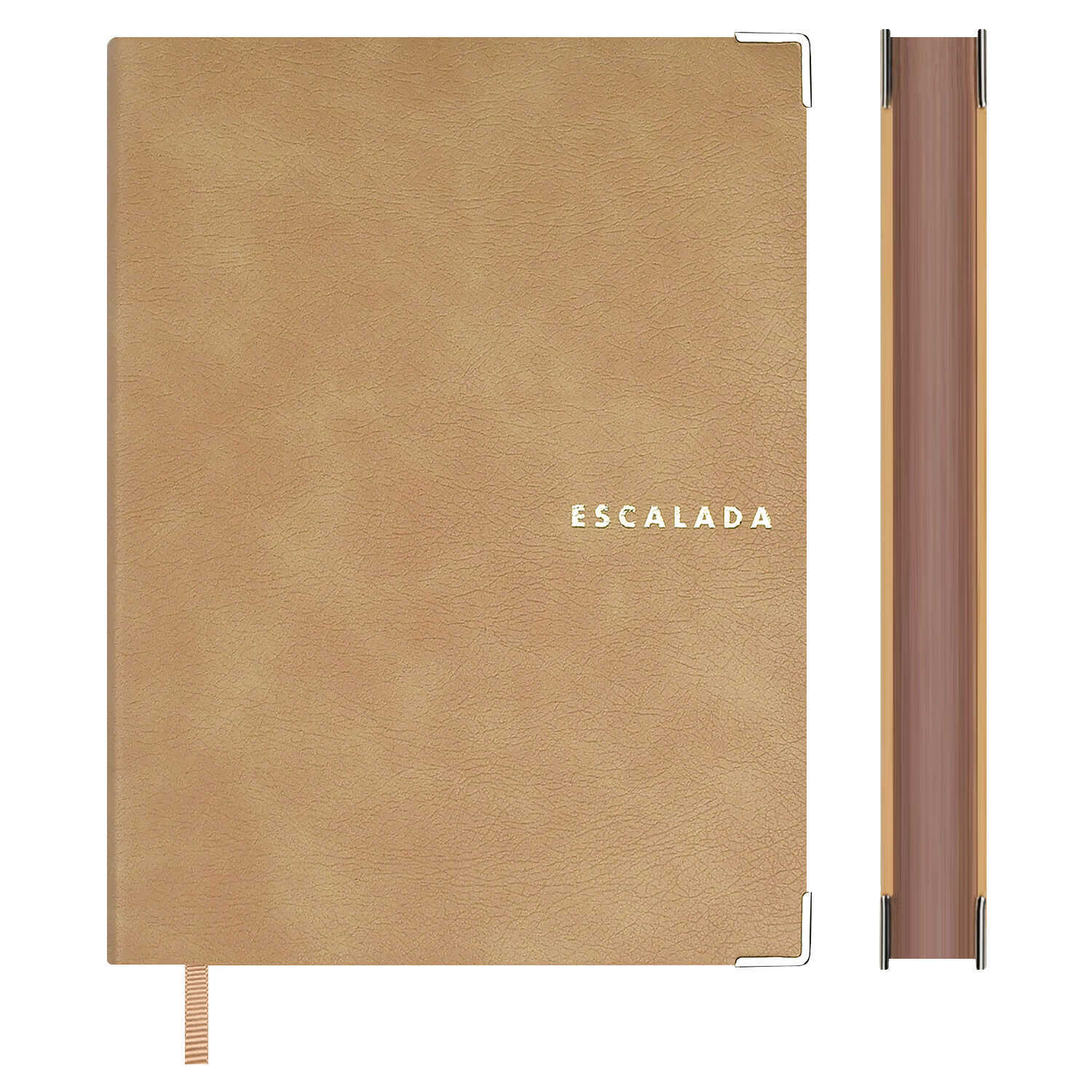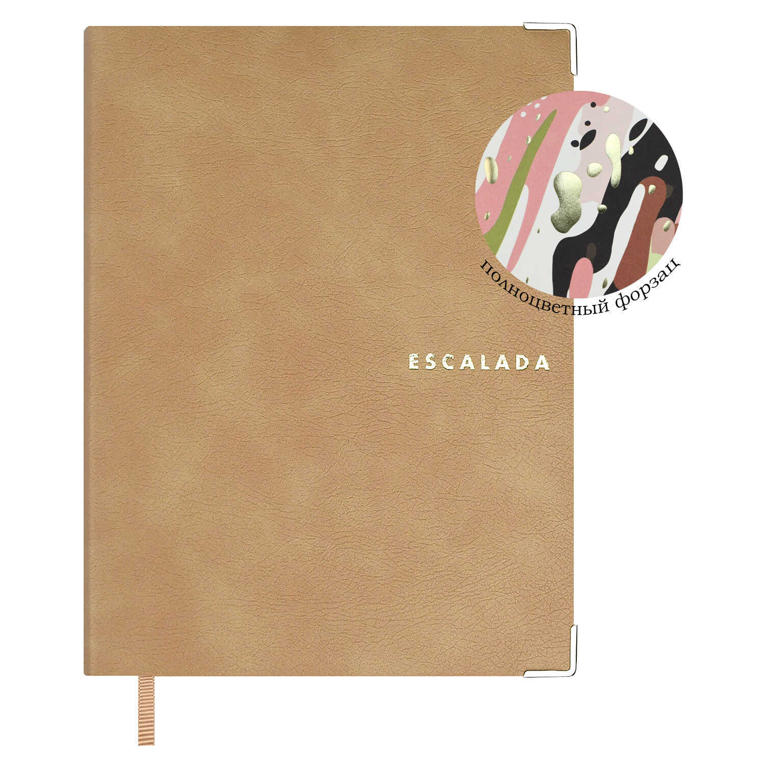 Ежедневник недатированный ESCALADA, А6+, 160 л., арт. 70687/ 20 АНРИ БЕЖЕВЫЙ (кожзам: 126х174 мм, интегральный переплёт, материал обложки: искусственная кожа "Анри"; способ крепления блока: ниткошвейный; декор: металлические уголки, тиснение фольгой; вн. блок: 160 л., кремовый офсет 70 г/м², печать в одну краску (линия), справочный материал: есть; перфорация углов блока: нет; отделка среза: окрашивание пантоном; закладка/-и: одно ляссе, каптал: есть; форзац: полноцветная печать, тиснение фольгой, персонализация возможна: да; индивидуальная упаковка: промостикер + ПЭТ-пакет)
