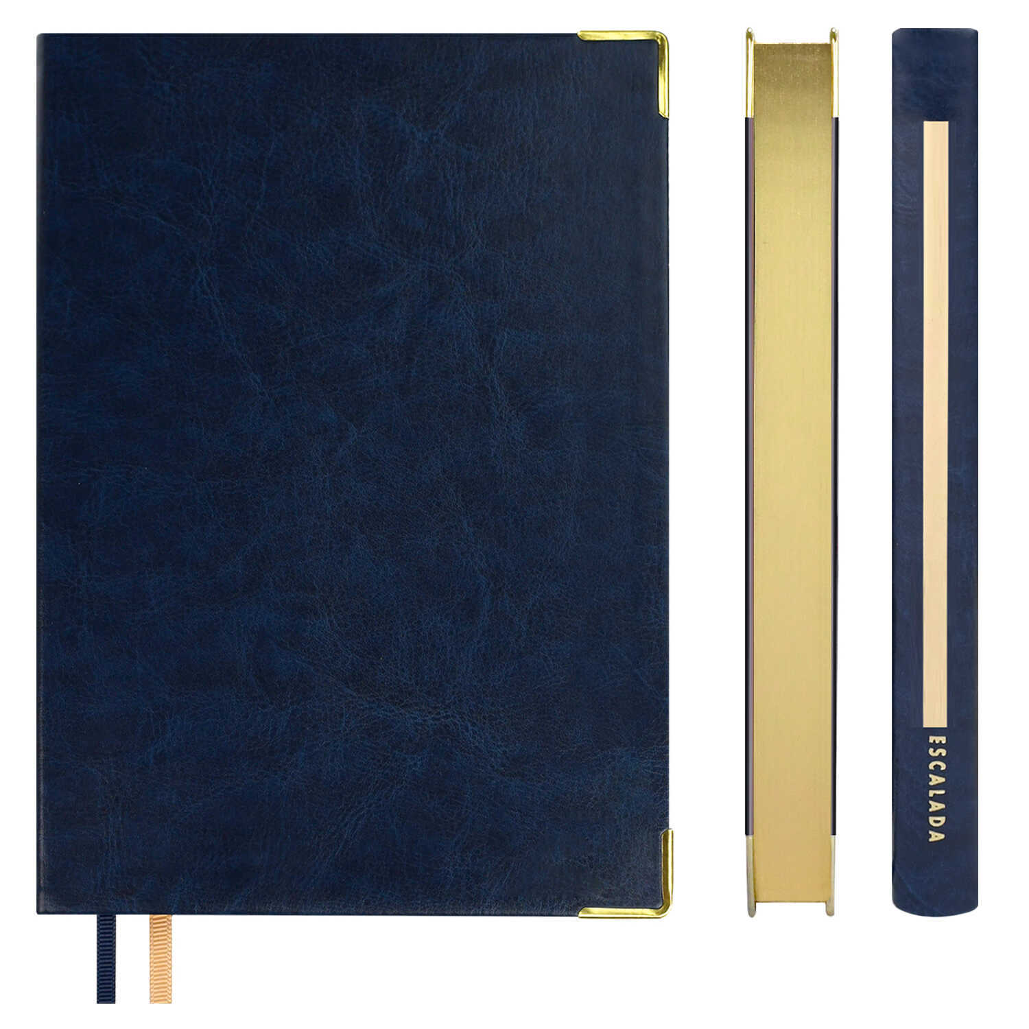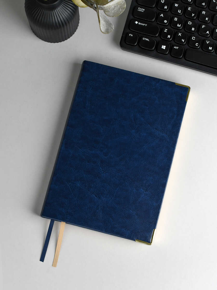 Ежедневник недатированный ESCALADA, #ДУМАЙ КАК МИЛЛИАРДЕР, А5, 160 л., арт. 70649/ 15 САРИФ СИНИЙ (кожзам: 146х211 мм, интегральный переплёт, материал обложки: искусственная кожа "Сариф"; способ крепления блока: ниткошвейный; декор: металлические уголки, тиснение фольгой; вн. блок: 160 л., белый офсет 70 г/м², печать в две краски (линия), справочный материал: есть; перфорация углов блока: нет; отделка среза: фольгирование; закладка/-и: два ляссе, каптал: есть; форзац: печать пантоном, особенности: в блоке использованы мотивирующие высказывания экстраординарной личности, предпринимателя и миллиардера, титулованного «Провидца века», шоумена и телеведущего, бывшего владельца конкурса красоты «Мисс Вселенная» и дважды президента США – Дональда Трампа