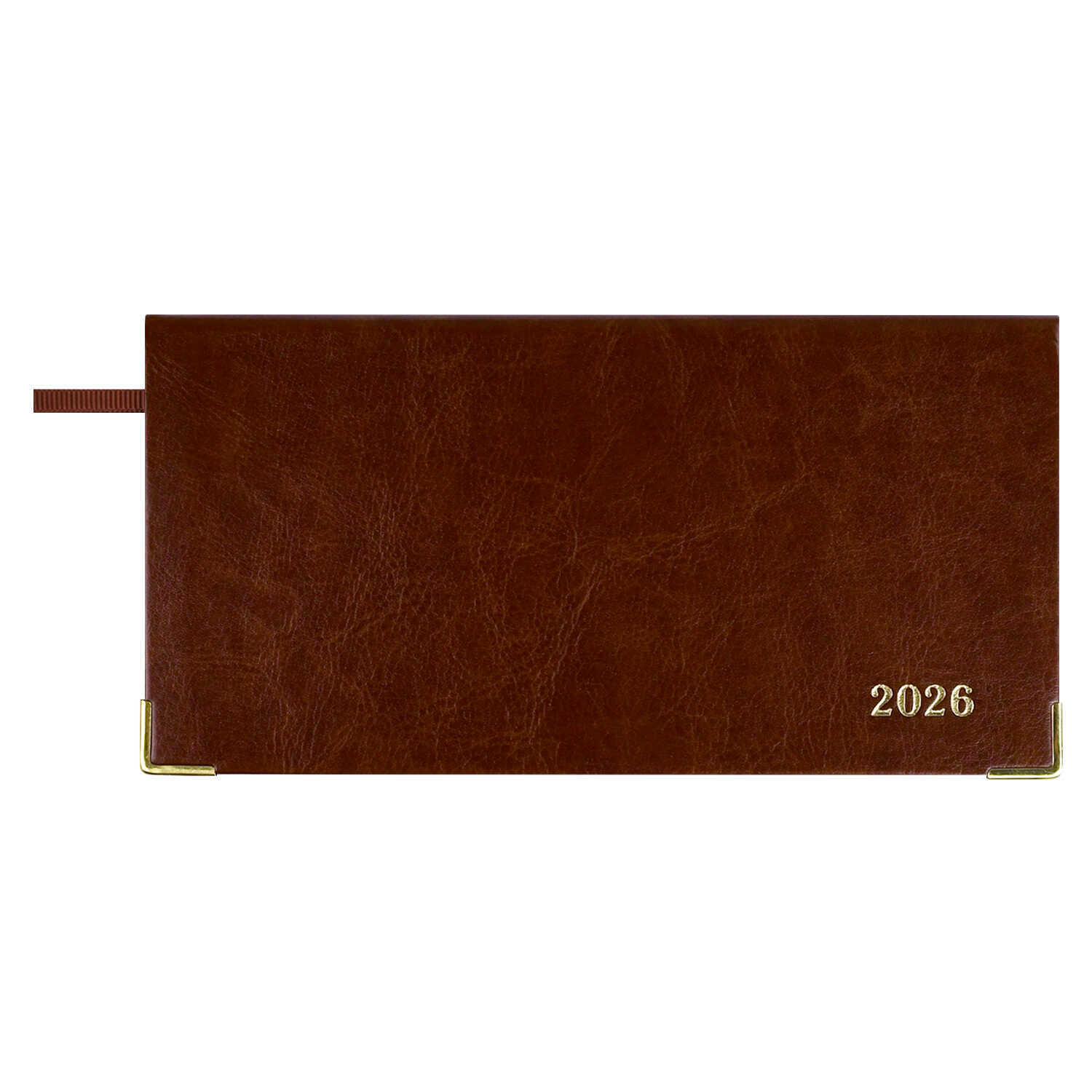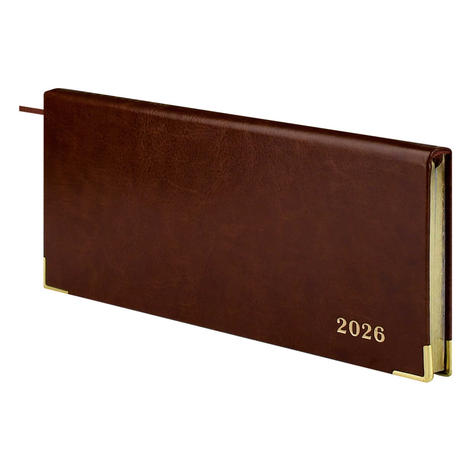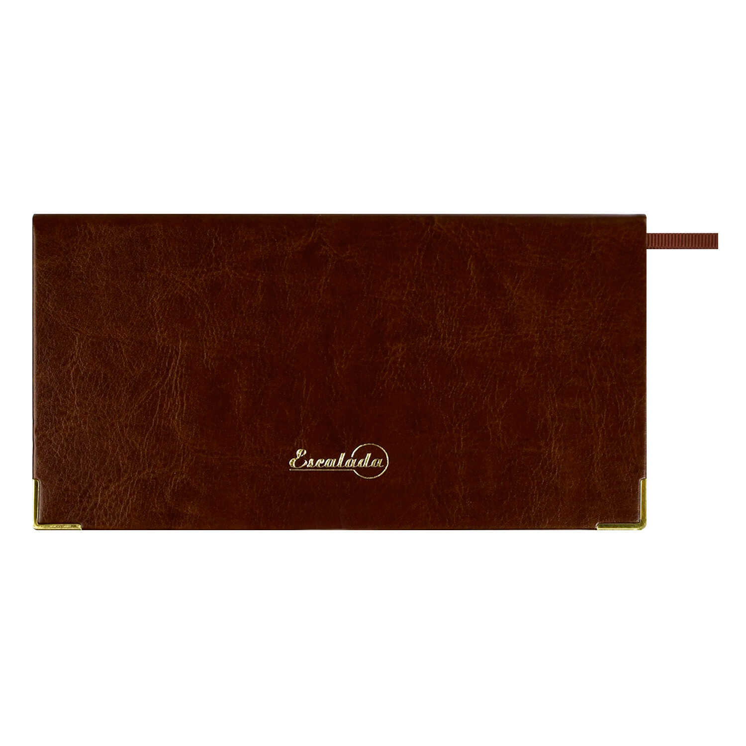 Еженедельник датированный 2026 ESCALADA, 170х88 мм, 64 л., арт. 70385/ 40 САРИФ КОРИЧНЕВЫЙ (кожзам: интегральный переплёт, материал обложки: искусственная кожа "Сариф"; декор: металлические уголки, тиснение фольгой; способ крепления блока: ниткошвейный; вн. блок: 64 л., белый офсет 70 г/м², печать в две краски (линия), справочный материал: есть; перфорация углов блока: нет; отделка среза: фольгирование; закладка/-и: одно ляссе; каптал: есть; форзац: печать пантоном; персонализация возможна: да; индивидуальная упаковка: ПЭТ-пакет)