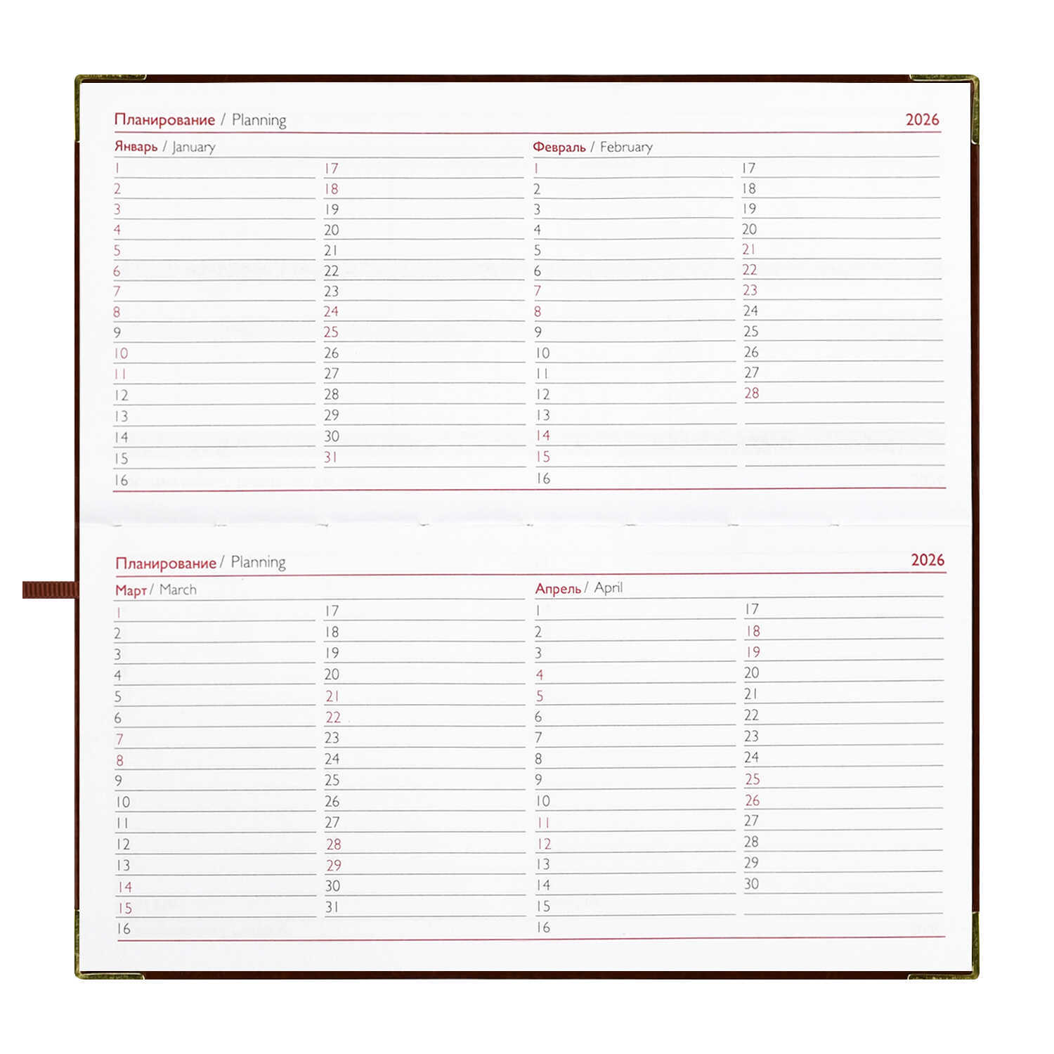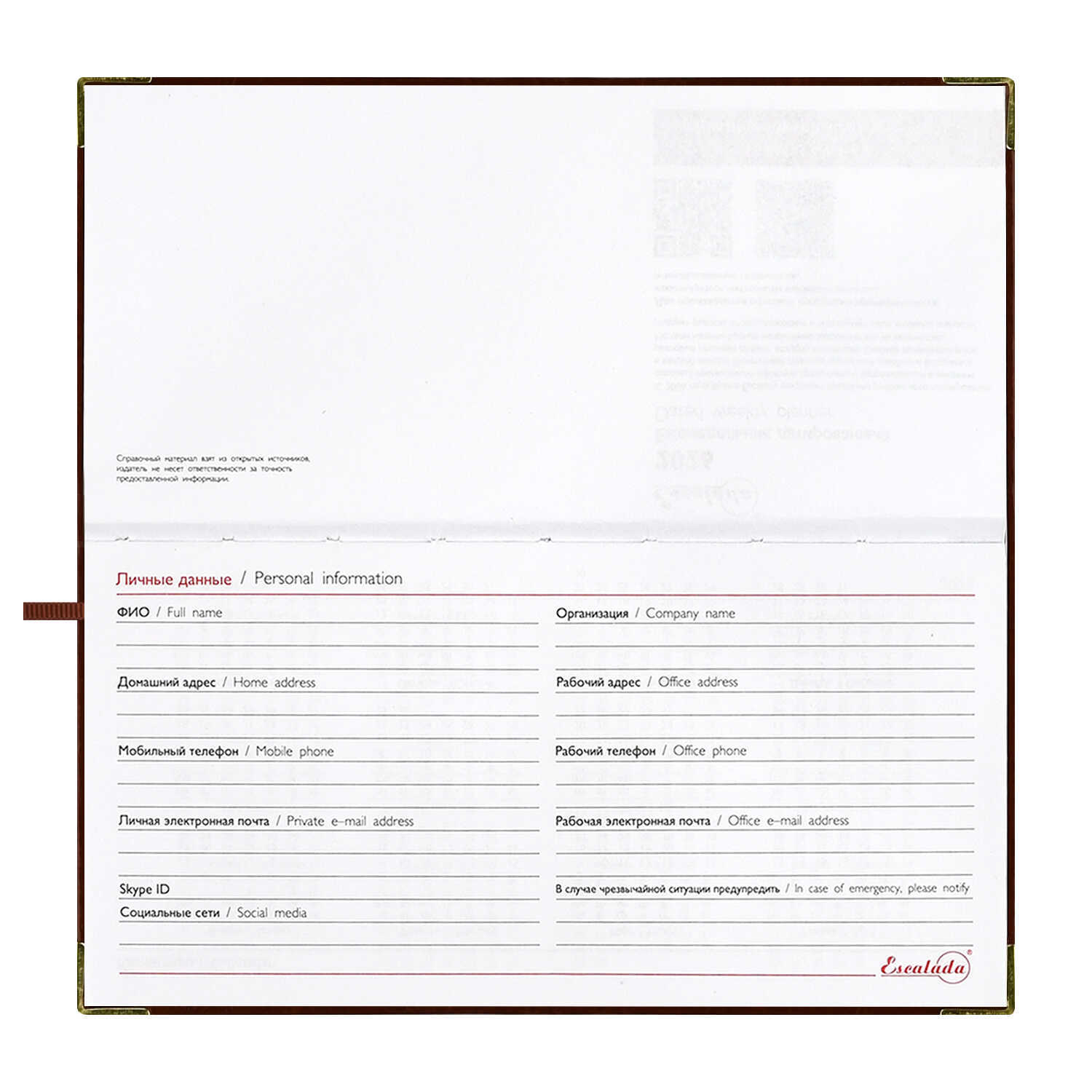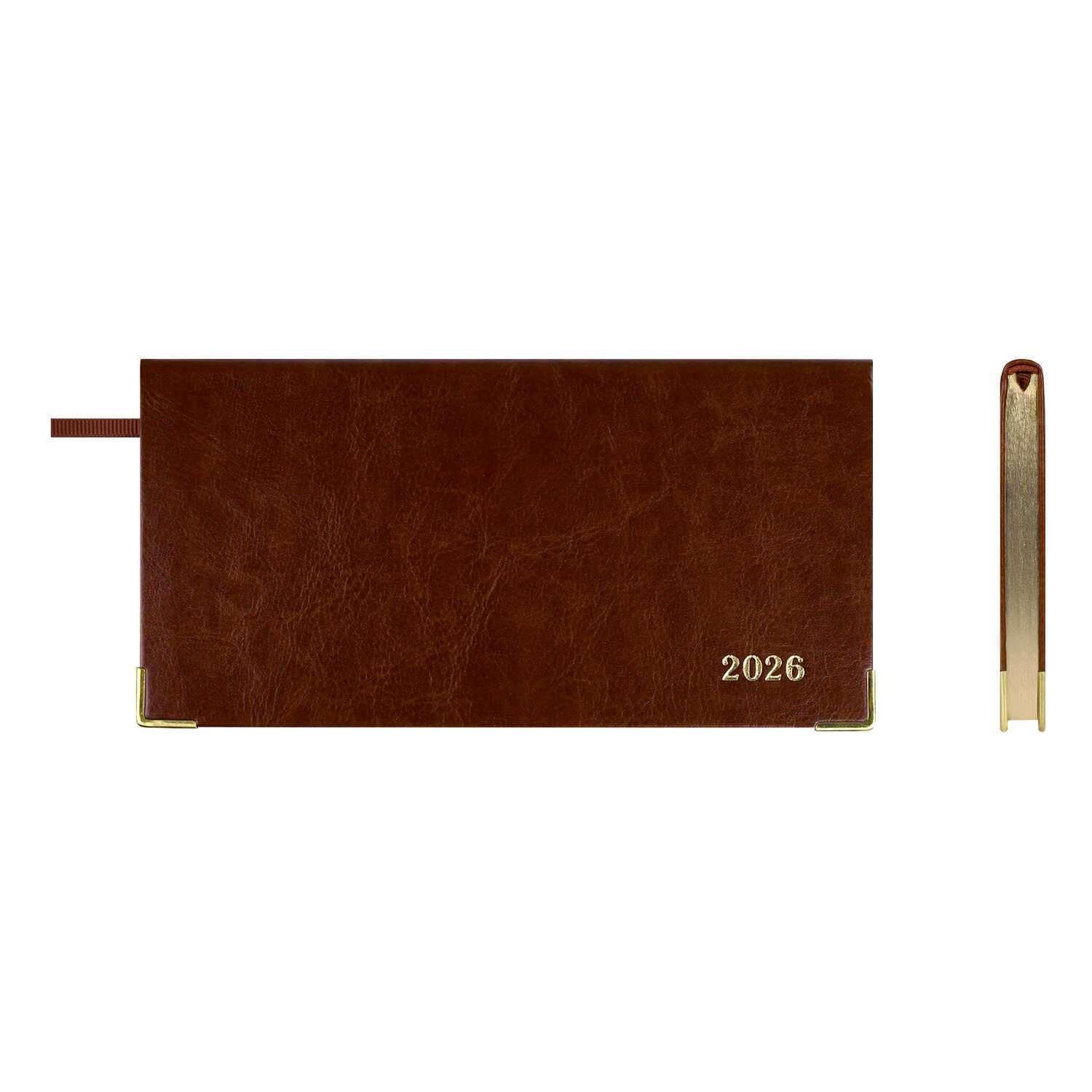 Еженедельник датированный 2026 ESCALADA, 170х88 мм, 64 л., арт. 70385/ 40 САРИФ КОРИЧНЕВЫЙ (кожзам: интегральный переплёт, материал обложки: искусственная кожа "Сариф"; декор: металлические уголки, тиснение фольгой; способ крепления блока: ниткошвейный; вн. блок: 64 л., белый офсет 70 г/м², печать в две краски (линия), справочный материал: есть; перфорация углов блока: нет; отделка среза: фольгирование; закладка/-и: одно ляссе; каптал: есть; форзац: печать пантоном; персонализация возможна: да; индивидуальная упаковка: ПЭТ-пакет)