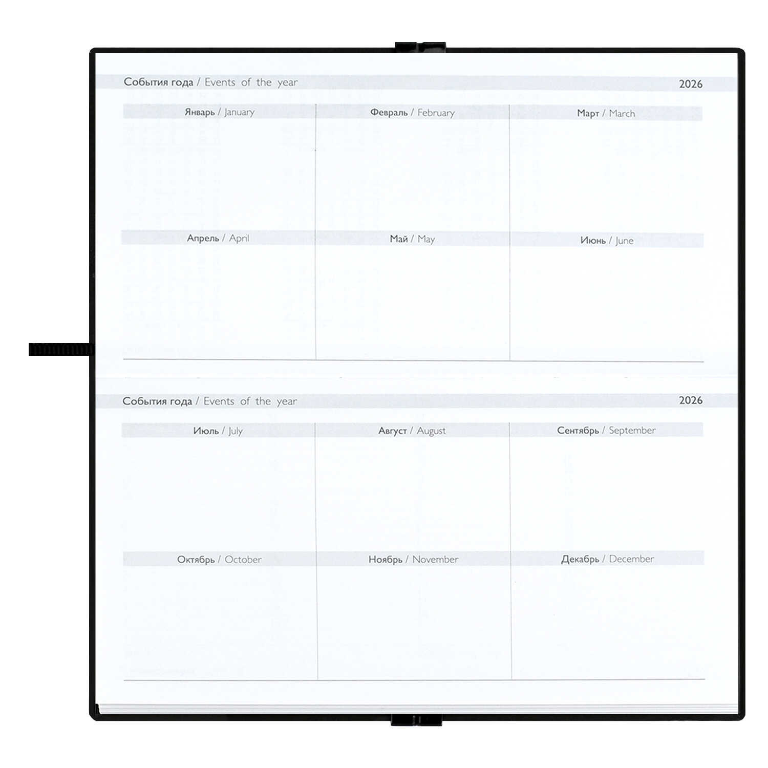 Еженедельник датированный 2026 ESCALADA, 175х95 мм, 64 л., арт. 70392/ 40 ТИВОЛИ ГЛОСС ЧЁРНЫЙ (кожзам: мягкий переплёт, материал обложки: искусственная кожа "Тиволи глосс"; декор: блинтовое тиснение; способ крепления блока: ниткошвейный; вн. блок: 64 л., белый офсет 70 г/м², печать в одну краску (линия), справочный материал: есть; перфорация углов блока: нет; закладка/-и: одно ляссе; каптал: нет; форзац: печать пантоном; особенности: застёжка-резинка; персонализация возможна: да; индивидуальная упаковка: ПЭТ-пакет)