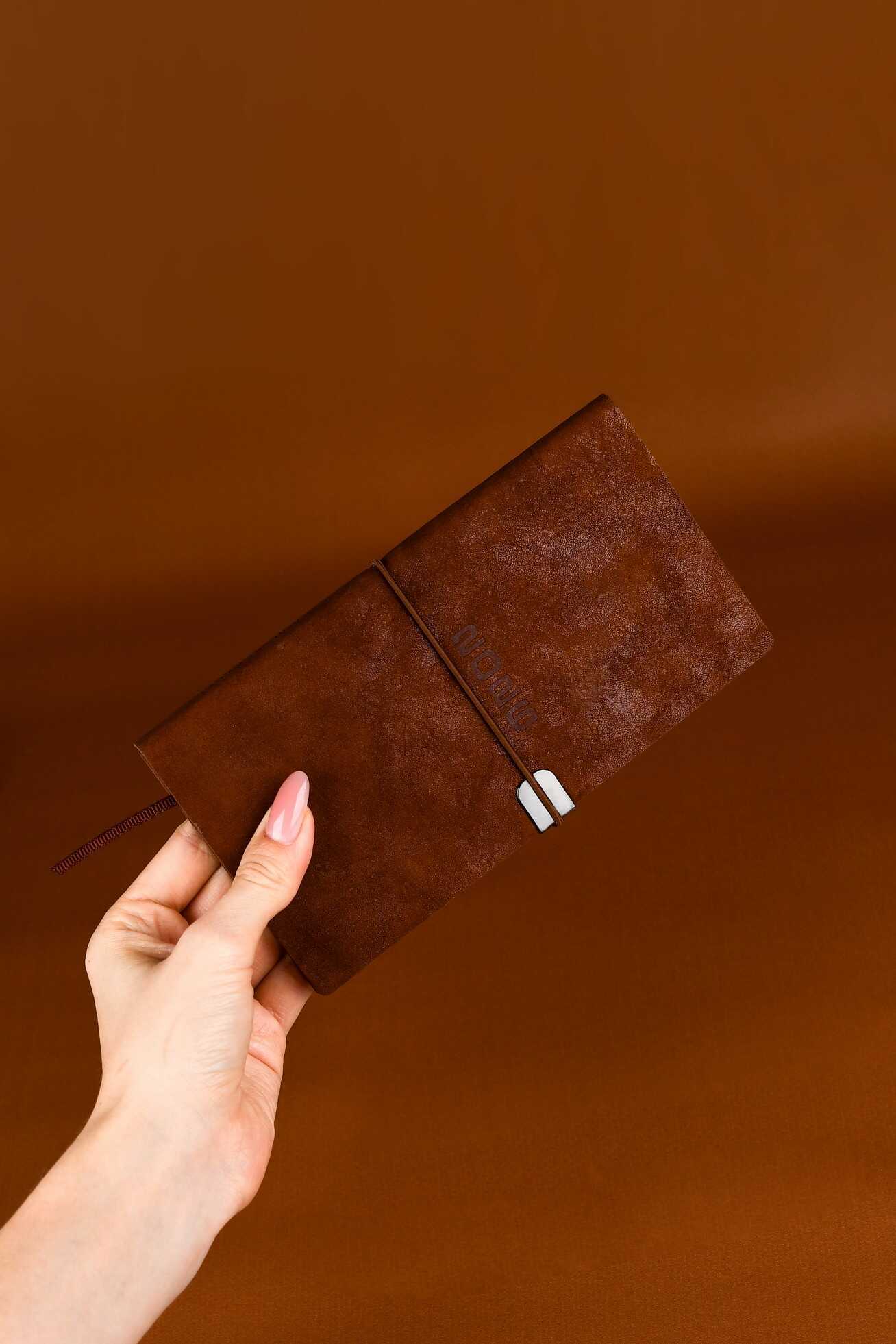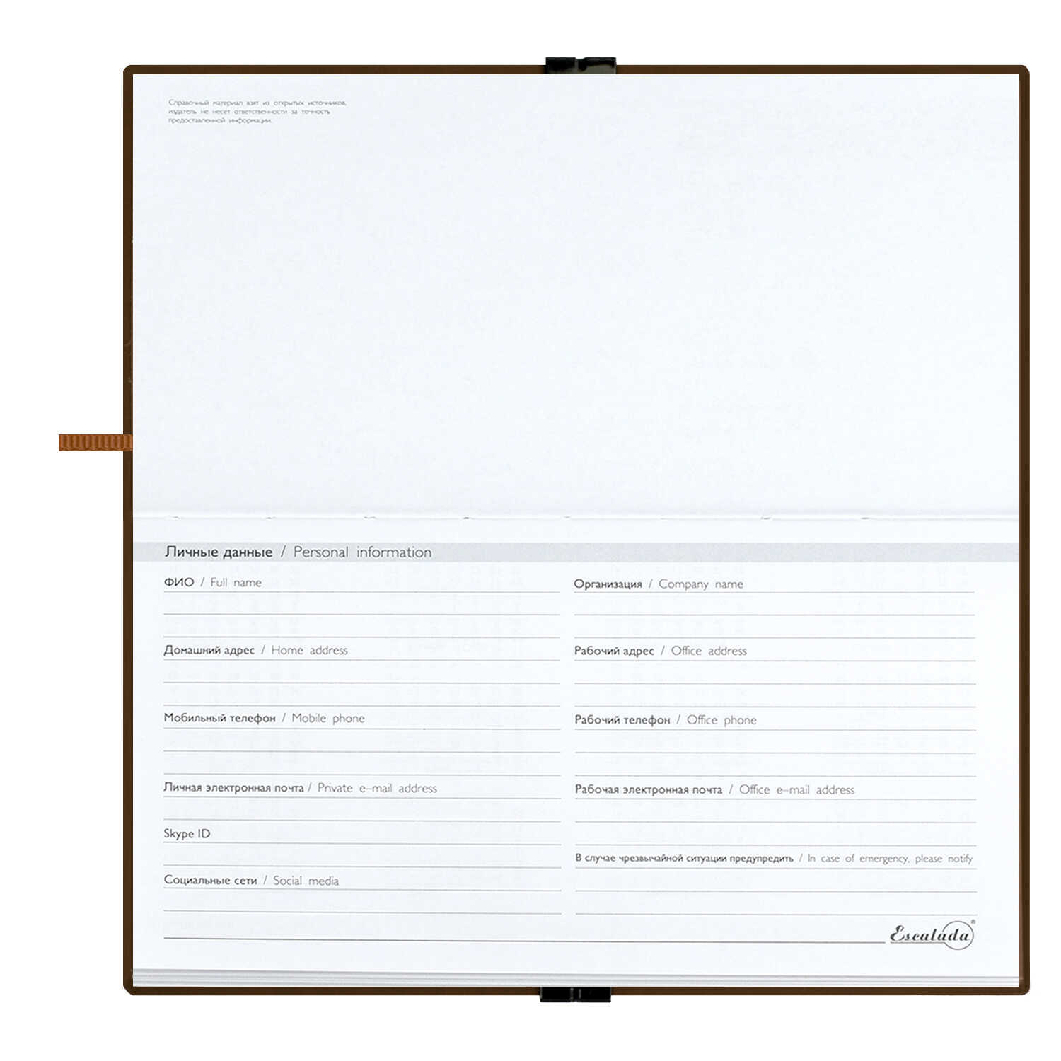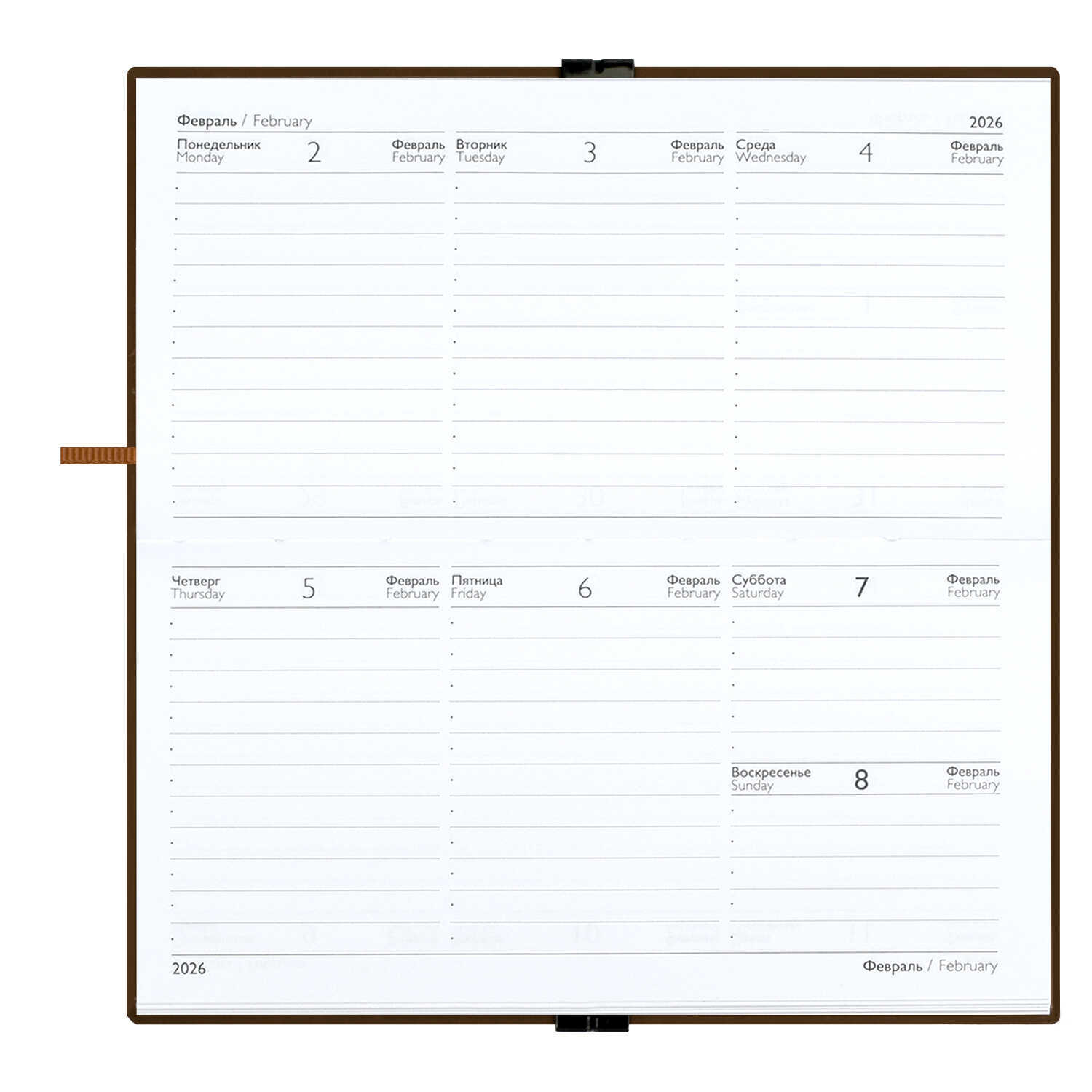Еженедельник датированный 2026 ESCALADA, 175х95 мм, 64 л., арт. 70393/ 40 ТИВОЛИ ГЛОСС КОРИЧНЕВЫЙ (кожзам: мягкий переплёт, материал обложки: искусственная кожа "Тиволи глосс"; декор: блинтовое тиснение; способ крепления блока: ниткошвейный; вн. блок: 64 л., белый офсет 70 г/м², печать в одну краску (линия), справочный материал: есть; перфорация углов блока: нет; закладка/-и: одно ляссе; каптал: нет; форзац: печать пантоном; особенности: застёжка-резинка; персонализация возможна: да; индивидуальная упаковка: ПЭТ-пакет)