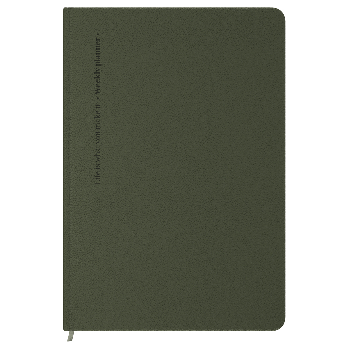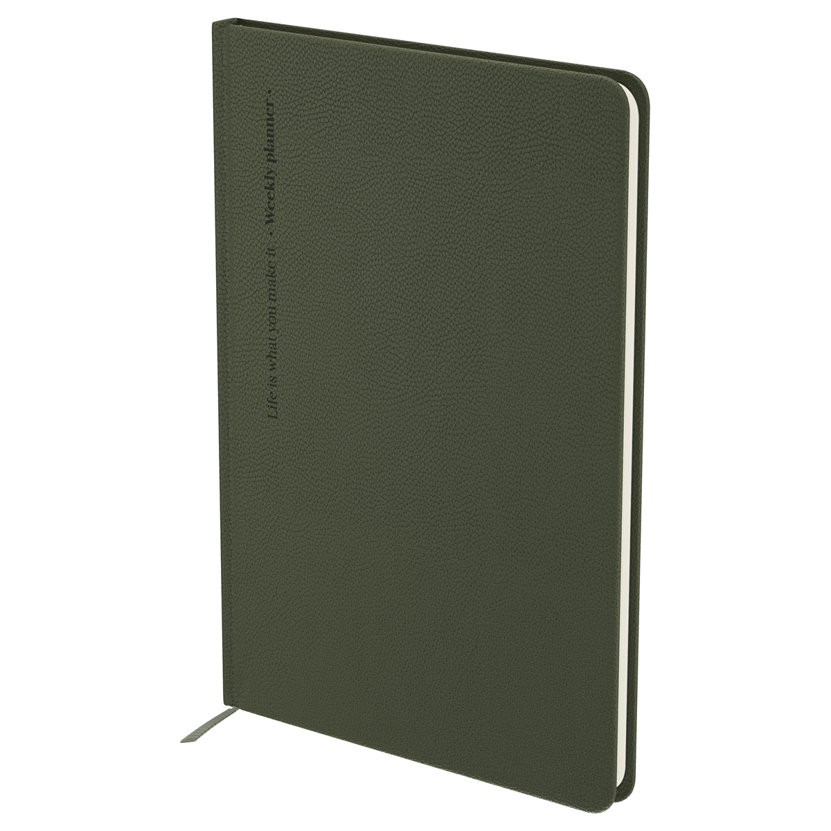 Еженедельник недатированный BG серии Palm – идеальный компаньон для стильной и организованной жизни. Пухлая обложка с мягкой прослойкой выполнена из экокожи цвета хаки. Мотивирующая фраза, нанесённая с помощью тиснения, придаёт уверенность в своих силах.