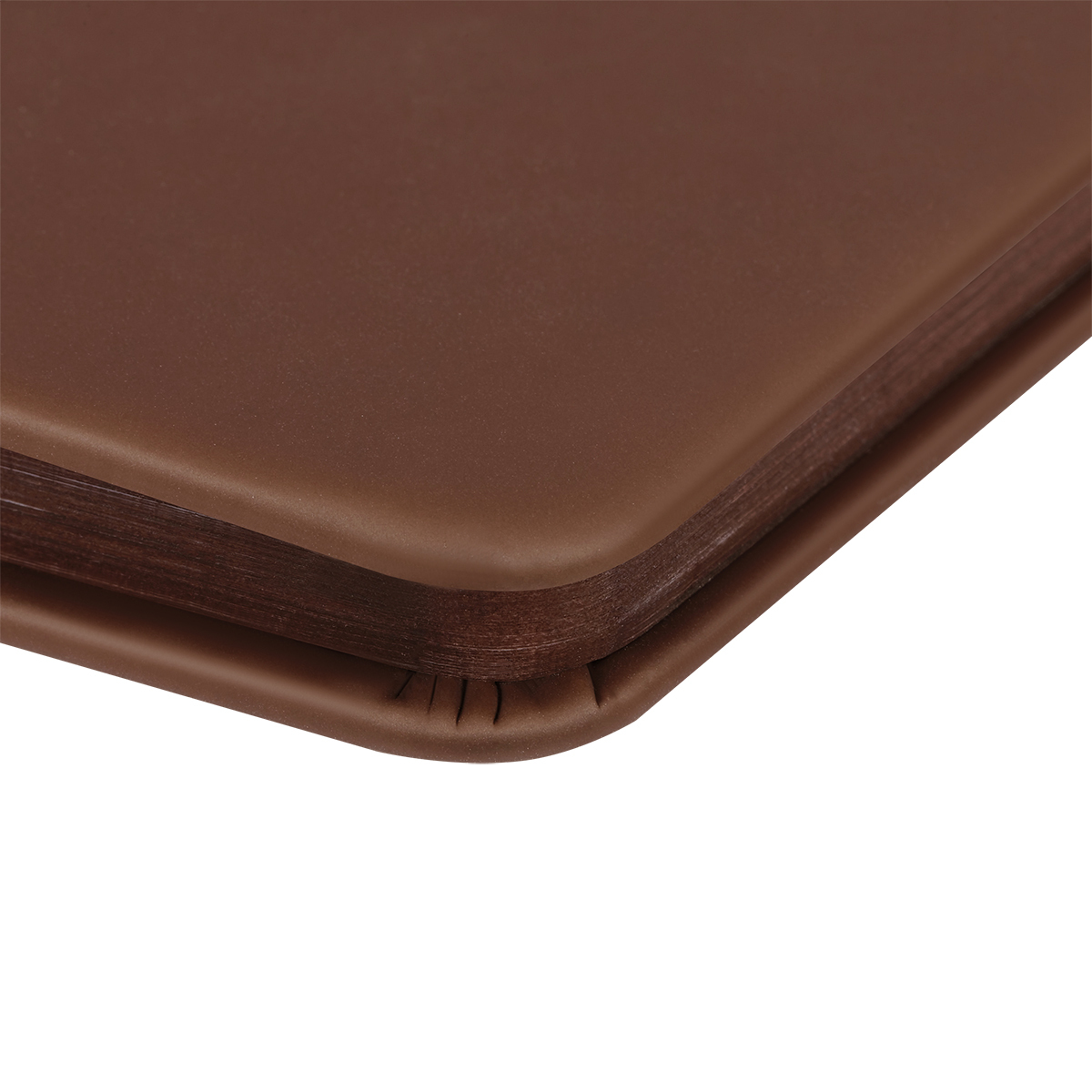 Твердая обложка выполнена из качественной экокожи корчневого цвета. Яркая и стильная она позволит выделиться, а элегантное тиснение придаёт изысканный вид.