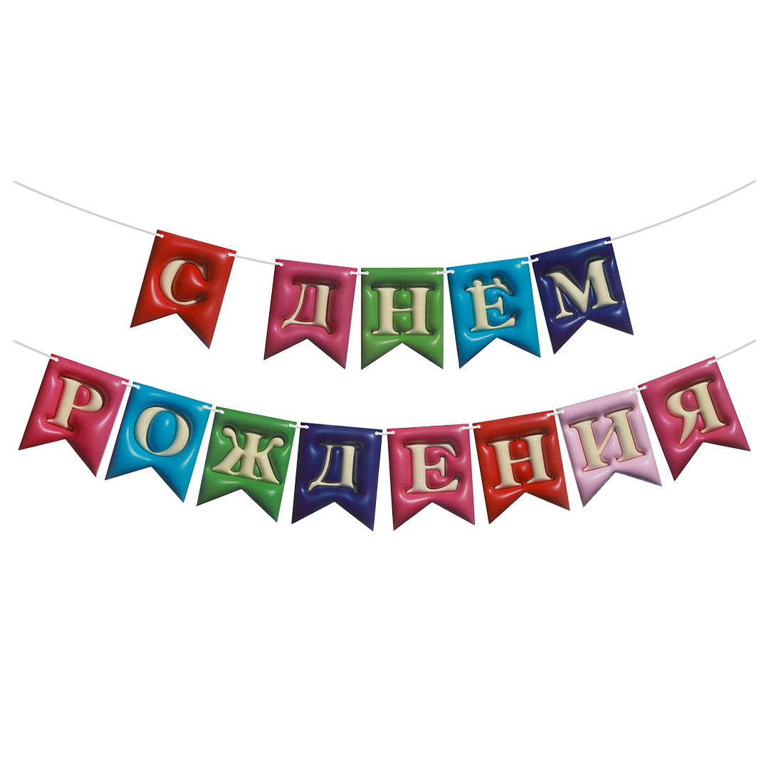 Гирлянда Флажки, 3D эффект, С Днем Рождения, Ассорти, 500 см, 12*15 см, 1 упак.