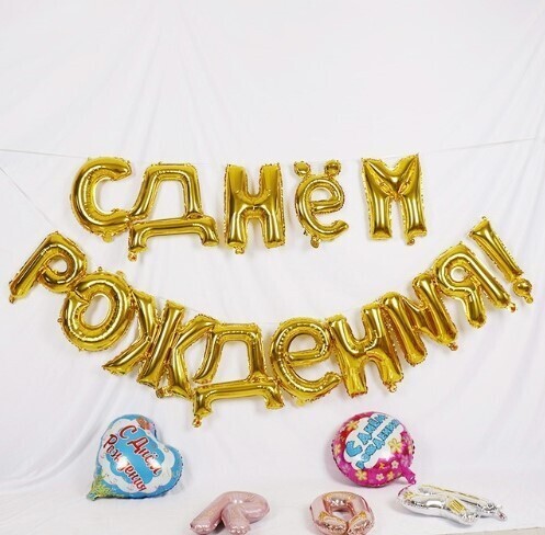 Гирлянда С Днем Рождения! (воздушные шарики), Золото, 300 см, 1 шт. 46070