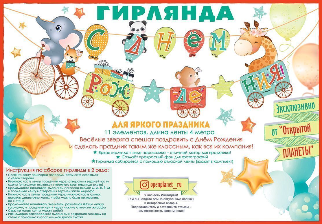 Гирлянда С Днем Рождения! (зверята), 400 см, 1 шт. 46070