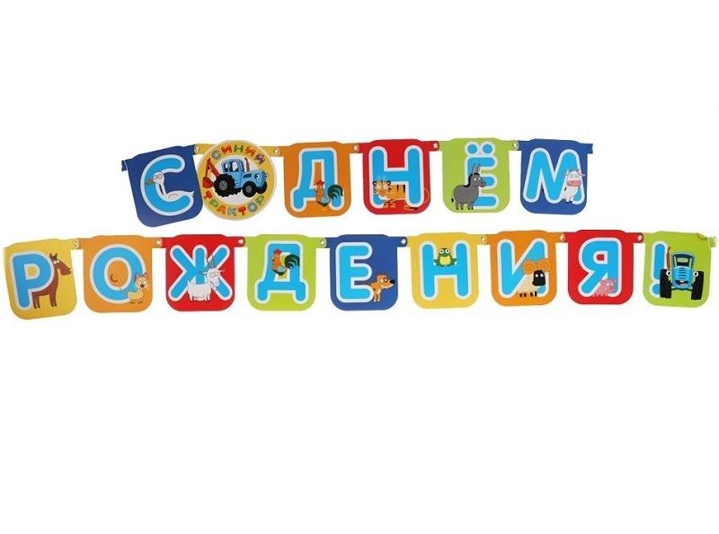 Гирлянда Синий трактор, С Днем Рождения!, 250 см, 1 шт.