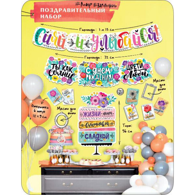 Гирлянда Сияй и улыбайся! С Днем Рождения!, 190 см, 1 шт. 46032