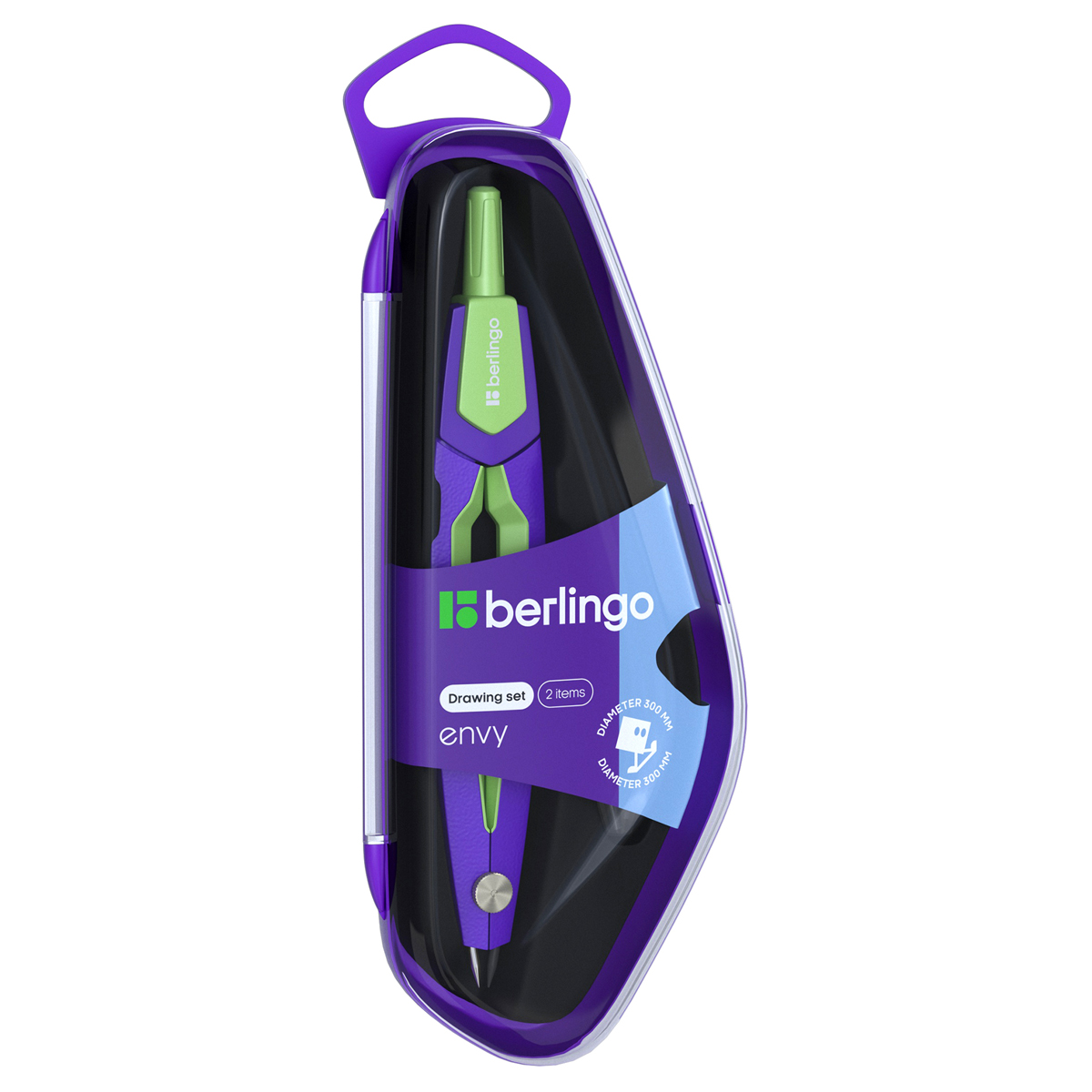 Готовальня Berlingo Envy с циркулем из прочного цинкового сплава.