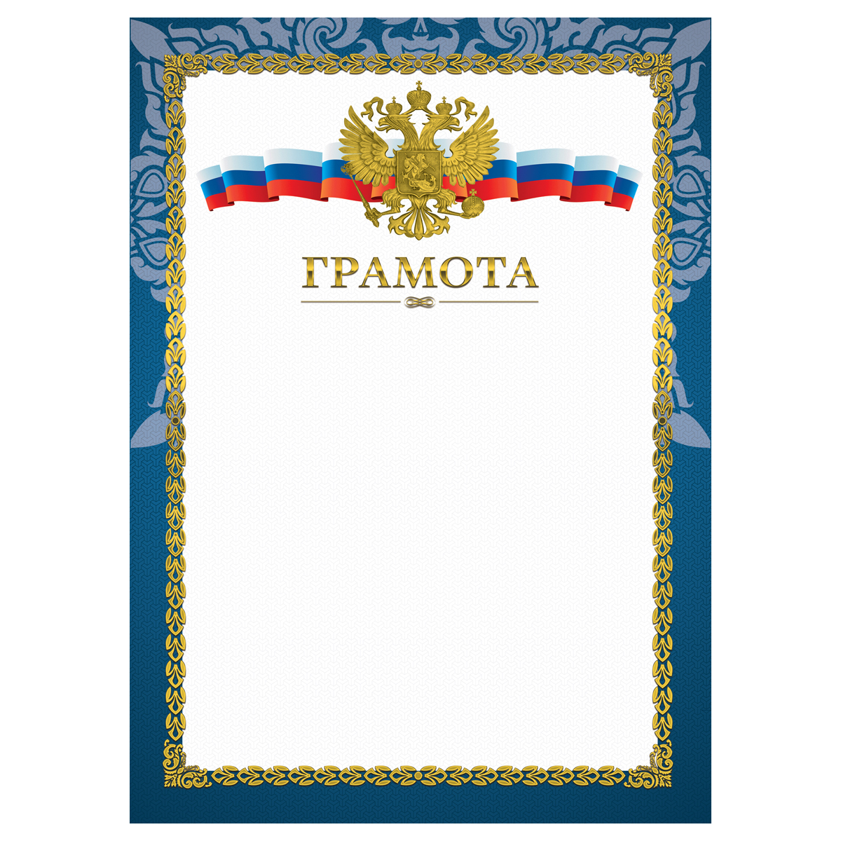 Бланк "Грамота" изготовлен из импортного целлюлозного мелованного картона плотностью 190 г/м2. Отделка бланка выполнена конгревным тиснением с фольгой. Формат - А4. Наградные грамоты и благодарности используются для выражения признательности сотрудникам, коллегам и партнерам. Бланк подходит для цветной печати.